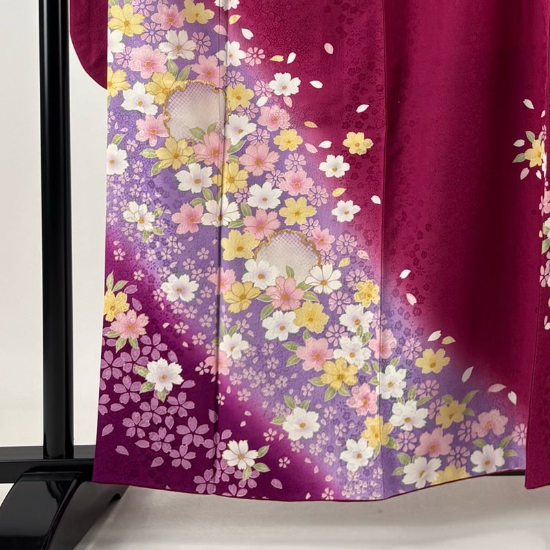 【振袖】 紫系 赤紫 秀品 A 約160cm~約169cm 裄丈67cm-68cm (L)size 袖丈91cm以上 9990-29990 美品 五万以下
