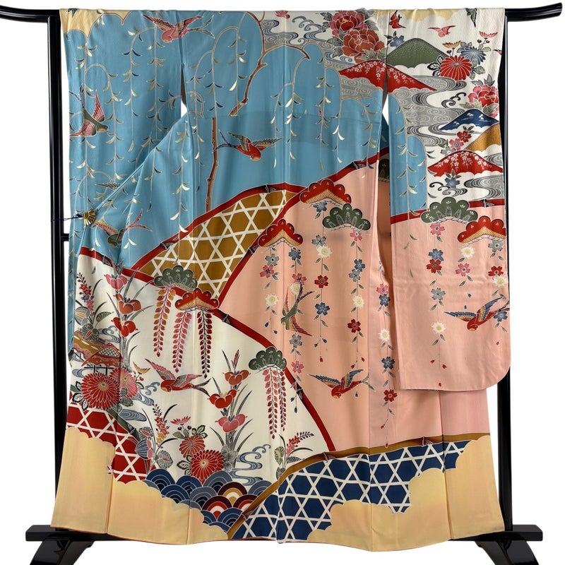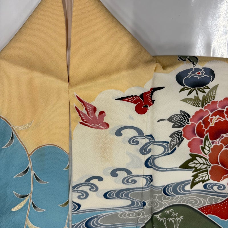 【着物ランク】優品 【素材】正絹 【身丈】約158.5cm 【裄丈】約65cm 【袖丈】約111cm 【袖幅】約34cm 【前幅】約24.5cm 【後幅】約29.5cm 【サイズ】M 【着物仕立て】袷 【着用時期】10~5月 【状態ランク】ランクB 【着物着用シーン】成人式、謝恩会