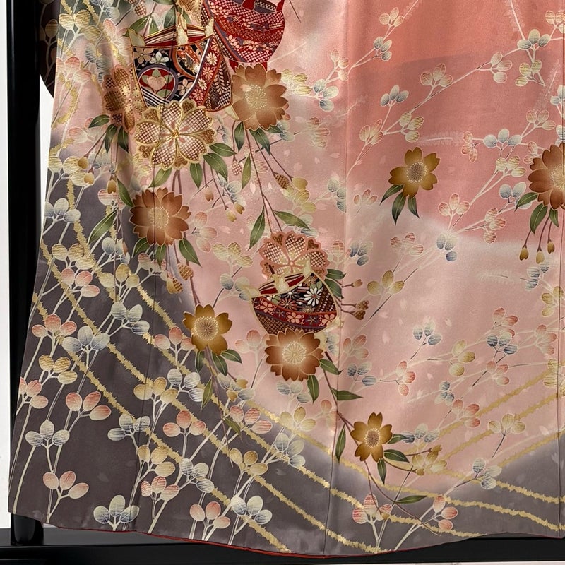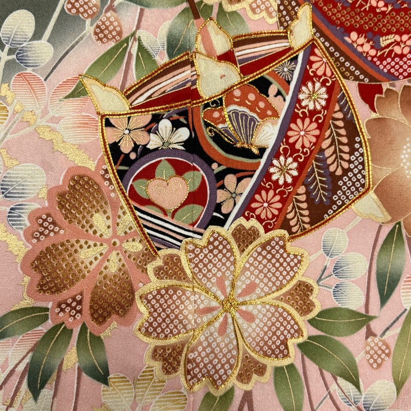 【着物ランク】優品 【素材】正絹 【身丈】約156cm 【裄丈】約66.5cm 【袖丈】約104cm 【袖幅】約34cm 【前幅】約24cm 【後幅】約29.5cm 【サイズ】M 【着物仕立て】袷 【着用時期】10~5月 【状態ランク】ランクA 【着物着用シーン】成人式、謝恩会