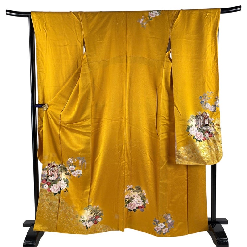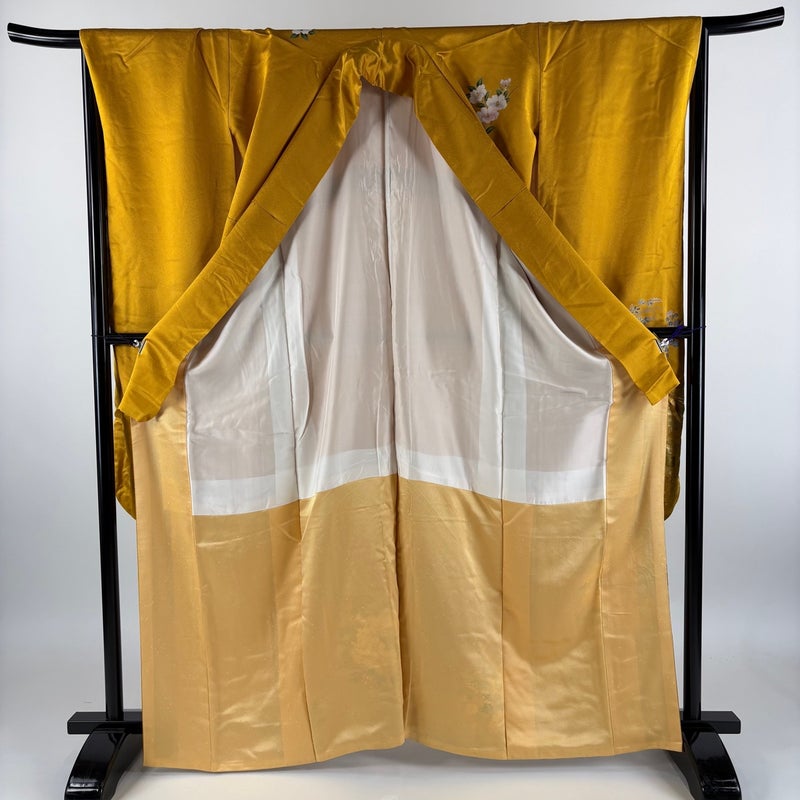 【振袖】 黄色系 山吹色 優品 B 約160cm~約169cm 裄丈67cm-68cm (M)size 袖丈91cm以上 4000-7980 二万以下
