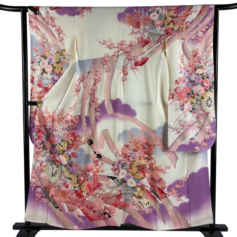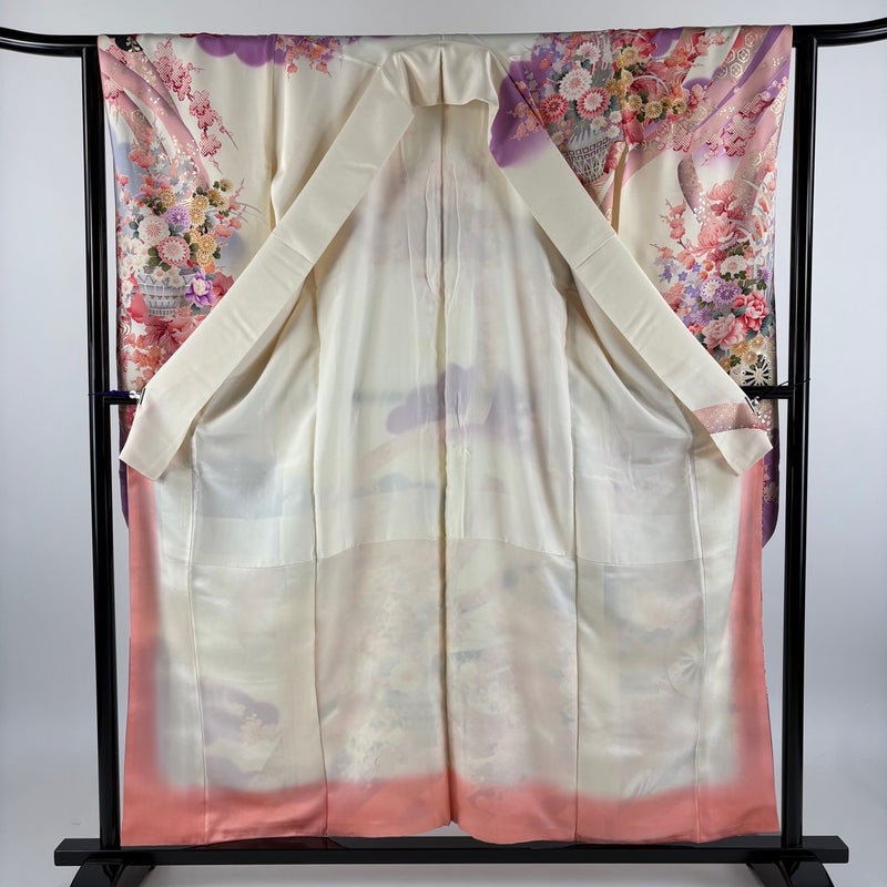 【振袖】 白系 クリーム 優品 B 約150cm~約159cm 裄丈62cm以下 (S)size 袖丈91cm以上 4000-7980 二万以下