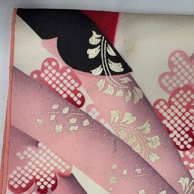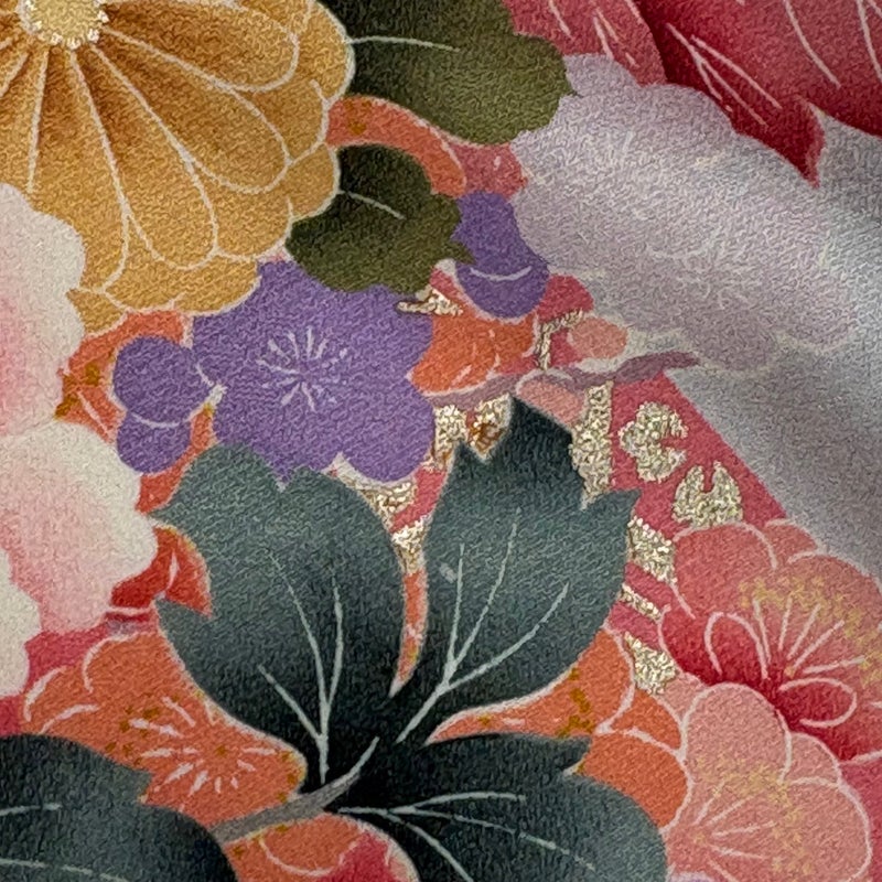 【着物ランク】優品 【素材】正絹 【身丈】約157cm 【裄丈】約62cm 【袖丈】約101cm 【袖幅】約33cm 【前幅】約24cm 【後幅】約29.5cm 【サイズ】S 【着物仕立て】袷 【着用時期】10~5月 【状態ランク】ランクB 【着物着用シーン】成人式、謝恩会