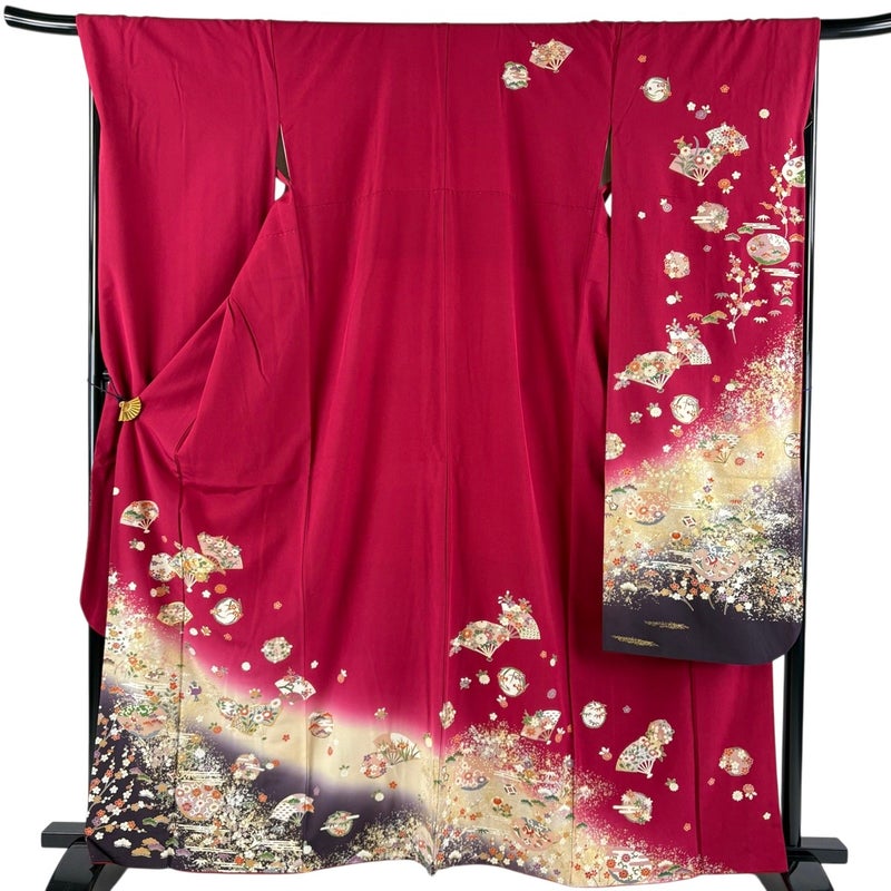 未婚女性の第一礼装としてお使いいただける振袖でございます。 お好みの帯や小物と合わせて晴れの日に相応しい華やかな装いにいかがでしょうか。 ※身丈・裄丈の縫込みの長さは測っておりません。 表地所々にヤケ、右前袖にシミ、衿周りや両袖口中と右前袖に汚れ、表地所々にシワがございます。 胴裏に黄変がございます。 リユース品としては良い状態で、まだまだご活用頂けると思われます。 ※なお、厳しく商品の状態確認を行っておりますが、記載の汚れ以外にも見落とし箇所がある可能性がある旨ご了承いただけますと幸いです。 沢山の商品の中からご覧いただき誠にありがとうございます。