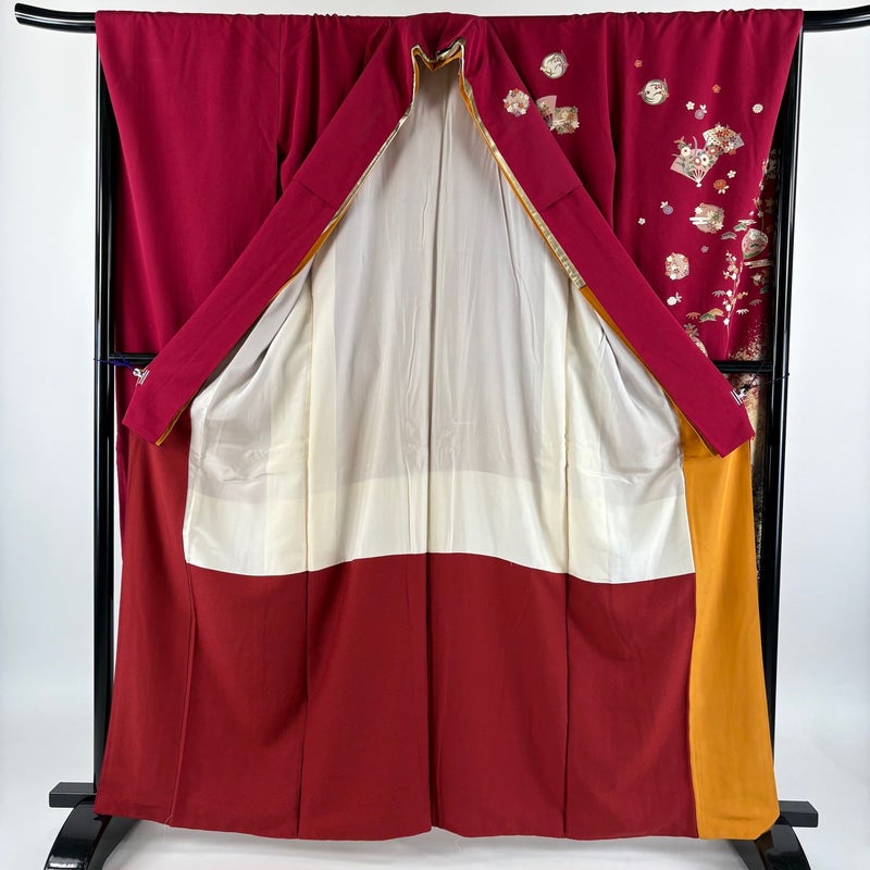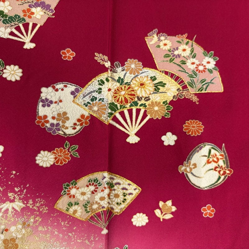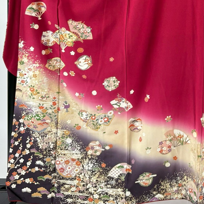 【着物ランク】優品 【素材】正絹 【身丈】約162cm 【裄丈】約68.5cm 【袖丈】約119cm 【袖幅】約36cm 【前幅】約26cm 【後幅】約30cm 【サイズ】L 【着物仕立て】袷 【着用時期】10~5月 【状態ランク】ランクB 【着物着用シーン】成人式、謝恩会