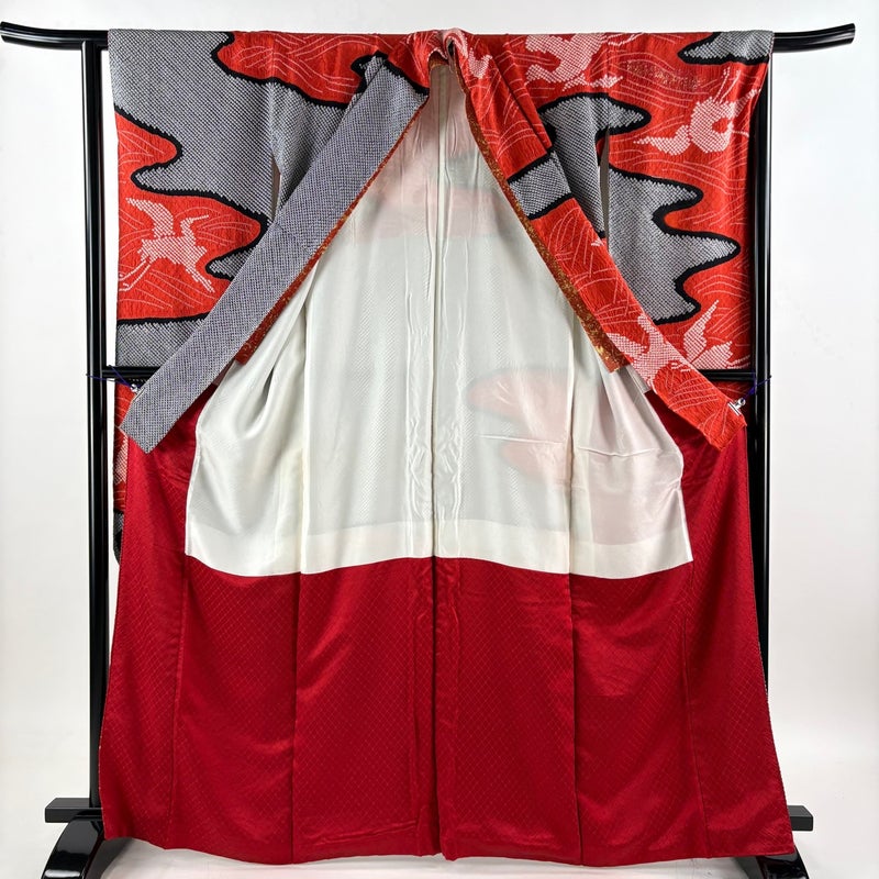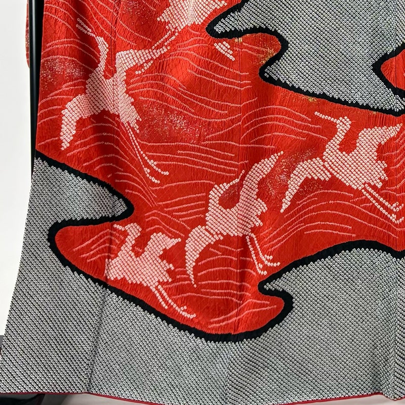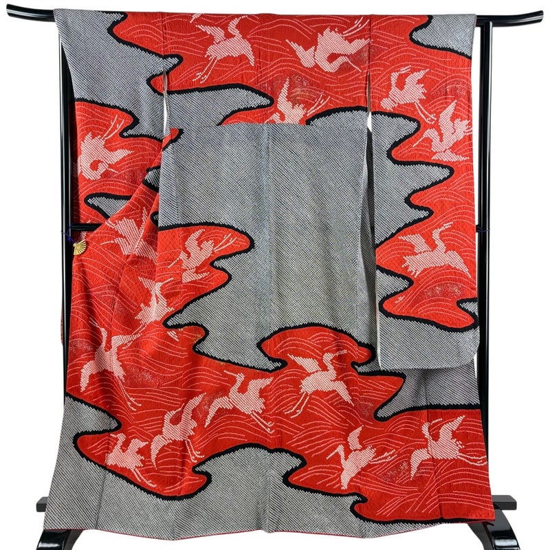 【振袖】 赤系 朱色 名品 B 約160cm~約169cm 裄丈63cm-64cm (M)size 袖丈91cm以上 9990-29990 二万以下