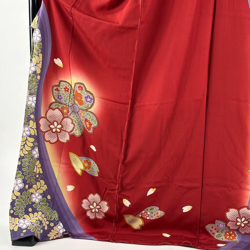 【振袖】 赤系 赤 名品 A 約180cm~約189cm 裄丈66cm (M)size 袖丈91cm以上 9990-29990 美品 二万以下