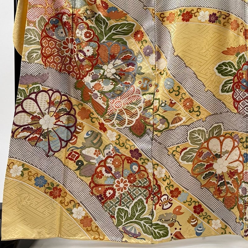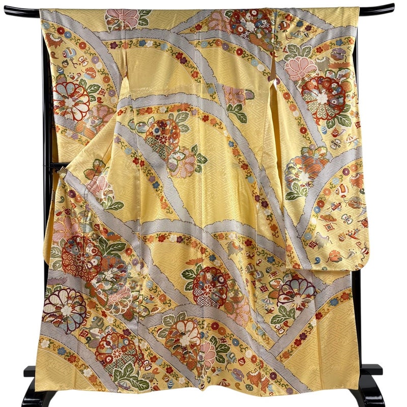 【振袖】 黄色系 薄黄 名品 B 約160cm~約169cm 裄丈69cm以上 (L)size 袖丈91cm以上 9990-29990 二万以下
