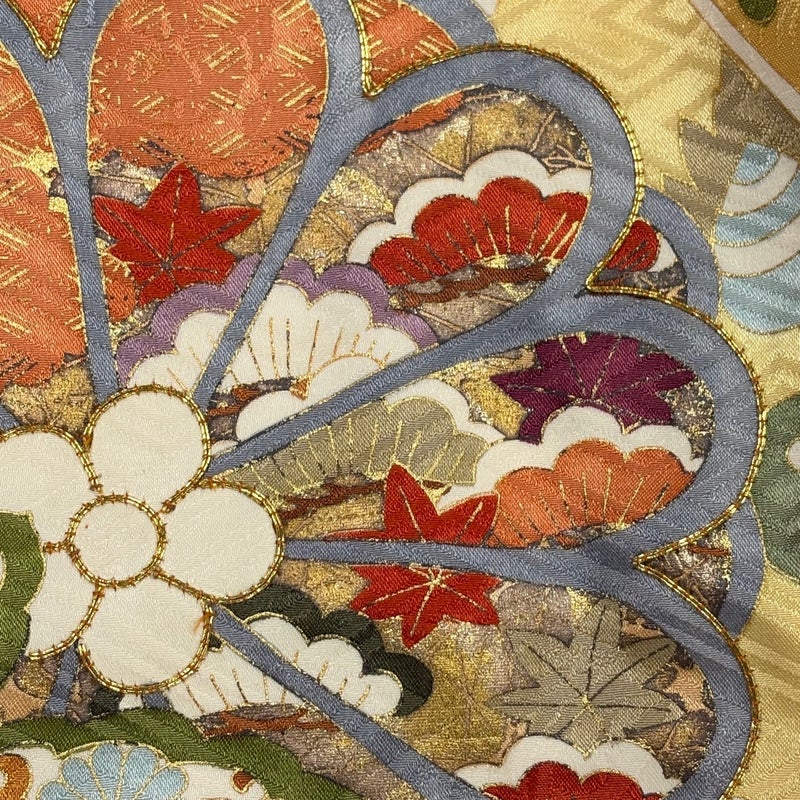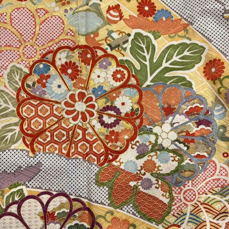 【着物ランク】名品 【素材】正絹 【身丈】約164cm 【裄丈】約70cm 【袖丈】約113cm 【袖幅】約35cm 【前幅】約28cm 【後幅】約31cm 【サイズ】L 【着物仕立て】袷 【着用時期】10~5月 【状態ランク】ランクB 【着物着用シーン】成人式、謝恩会