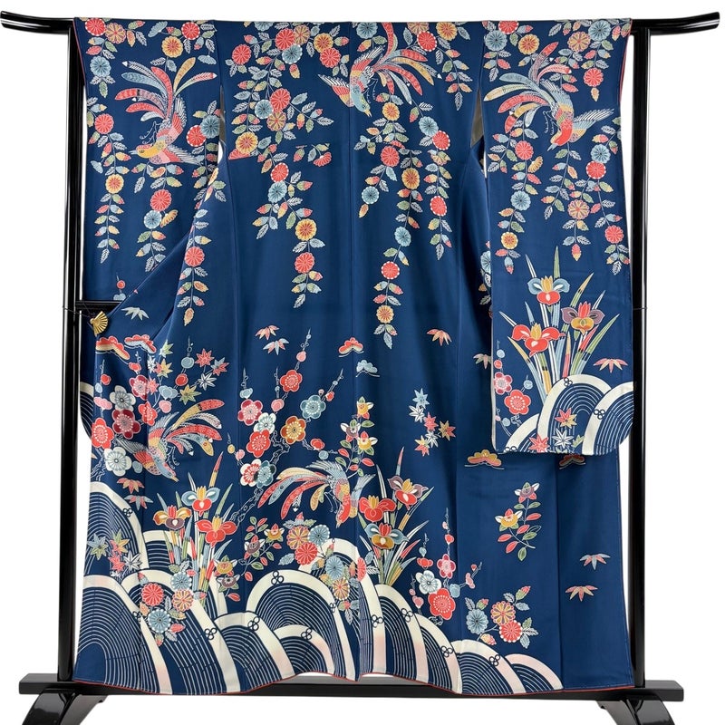 【着物ランク】名品 【素材】正絹 【身丈】約157.5cm 【裄丈】約65.5cm 【袖丈】約104cm 【袖幅】約32.5cm 【前幅】約25cm 【後幅】約29.5cm 【サイズ】M 【着物仕立て】袷 【着用時期】10~5月 【状態ランク】ランクB 【着物着用シーン】成人式、謝恩会