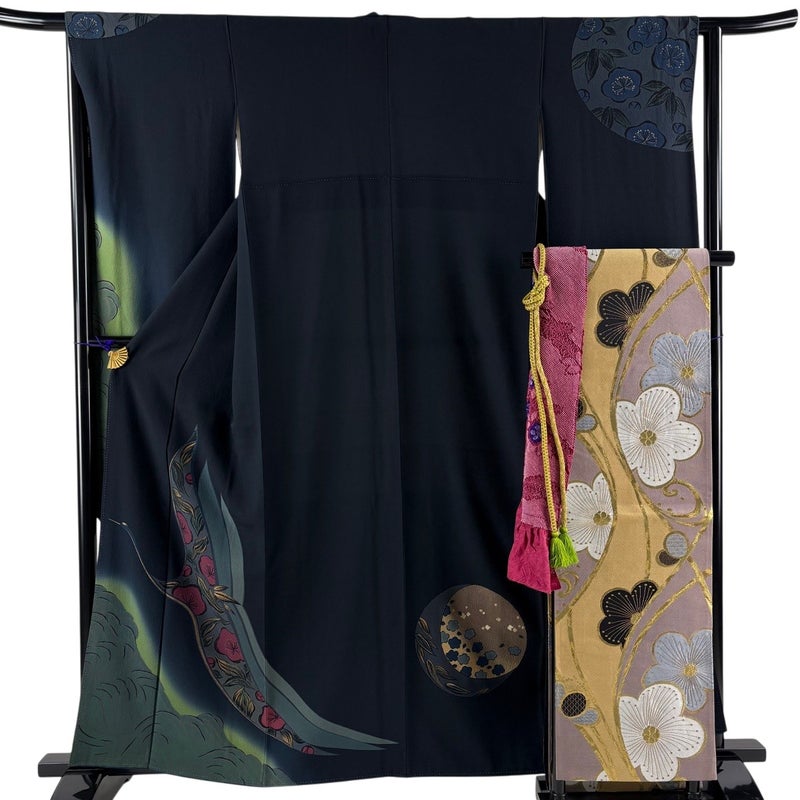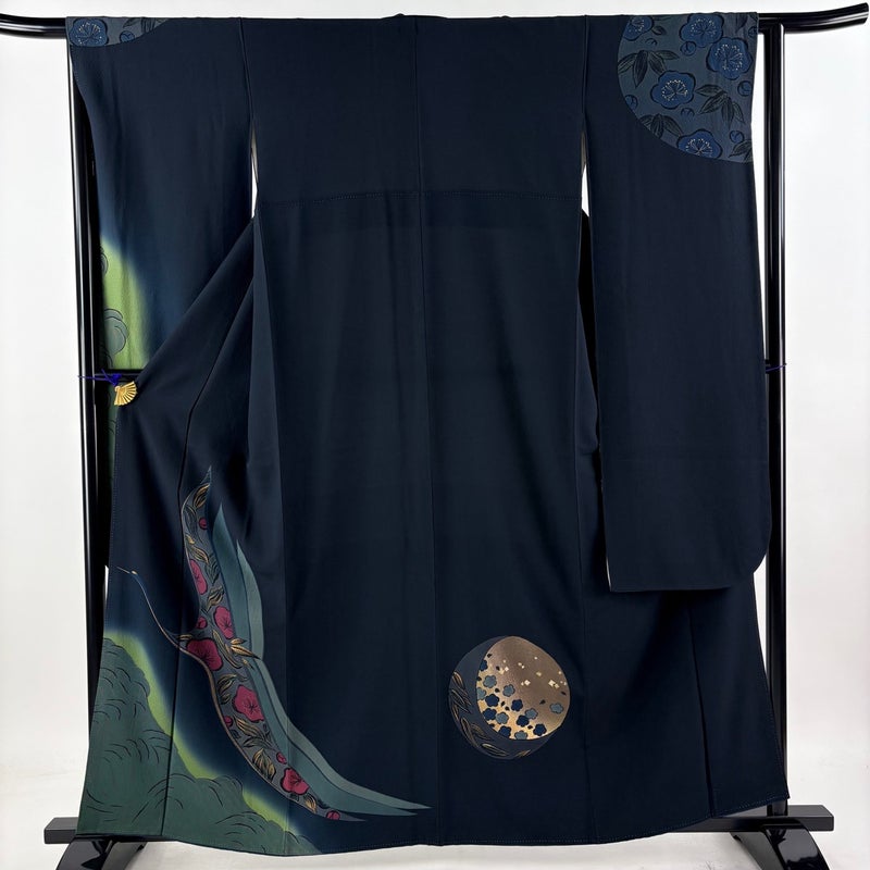 【振袖】 黒系 墨色 秀品 B 約160cm~約169cm 裄丈63cm-64cm (M)size 袖丈91cm以上 9990-29990 五万以下