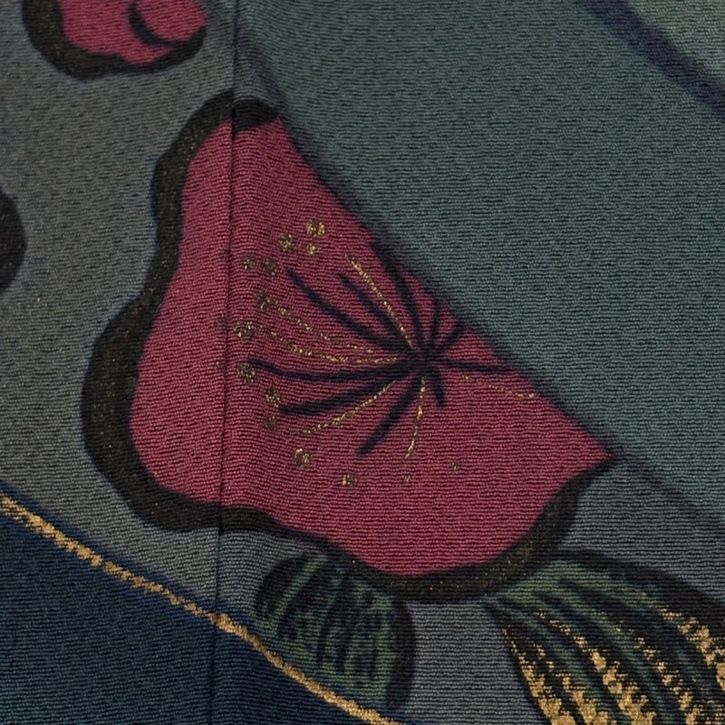 【着物ランク】秀品 【素材】正絹 【身丈】約161.5cm 【裄丈】約64cm 【袖丈】約109cm 【袖幅】約32cm 【前幅】約24cm 【後幅】約30cm 【サイズ】M 【着物仕立て】袷 【着用時期】10~5月 【帯丈2】約428cm 【帯幅2】約31cm 【状態ランク】ランクB 【着物着用シーン】成人式、謝恩会