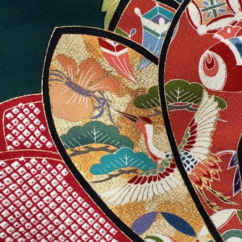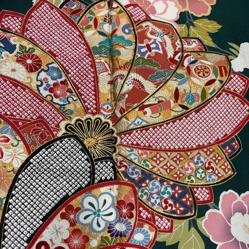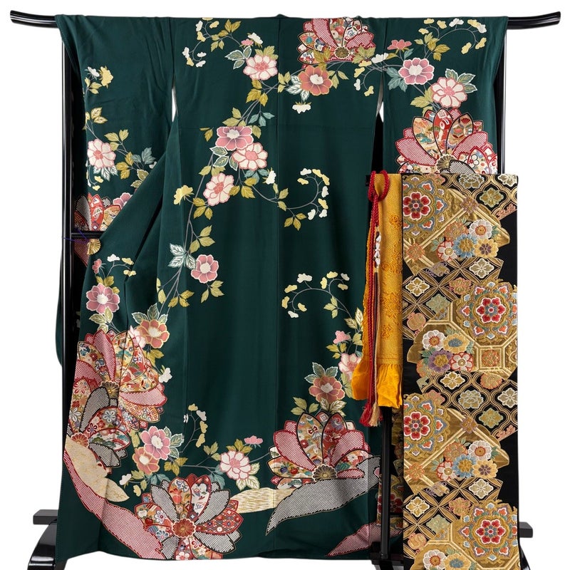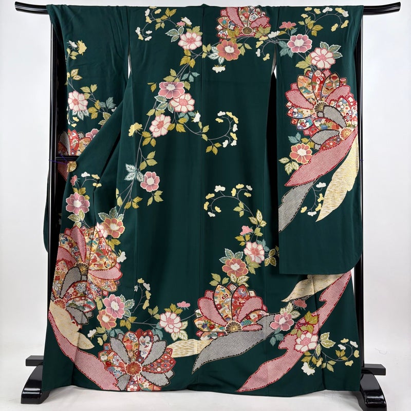 【振袖】 緑系 緑 秀品 B 約160cm~約169cm 裄丈67cm-68cm (L)size 袖丈91cm以上 9990-29990 五万以下