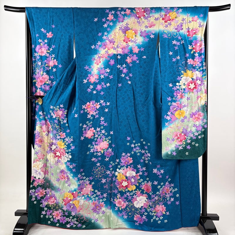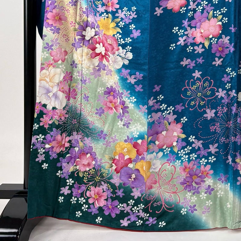 【振袖】 青系 青緑 秀品 B 約160cm~約169cm 裄丈67cm-68cm (M)size 袖丈91cm以上 9990-29990 五万以下