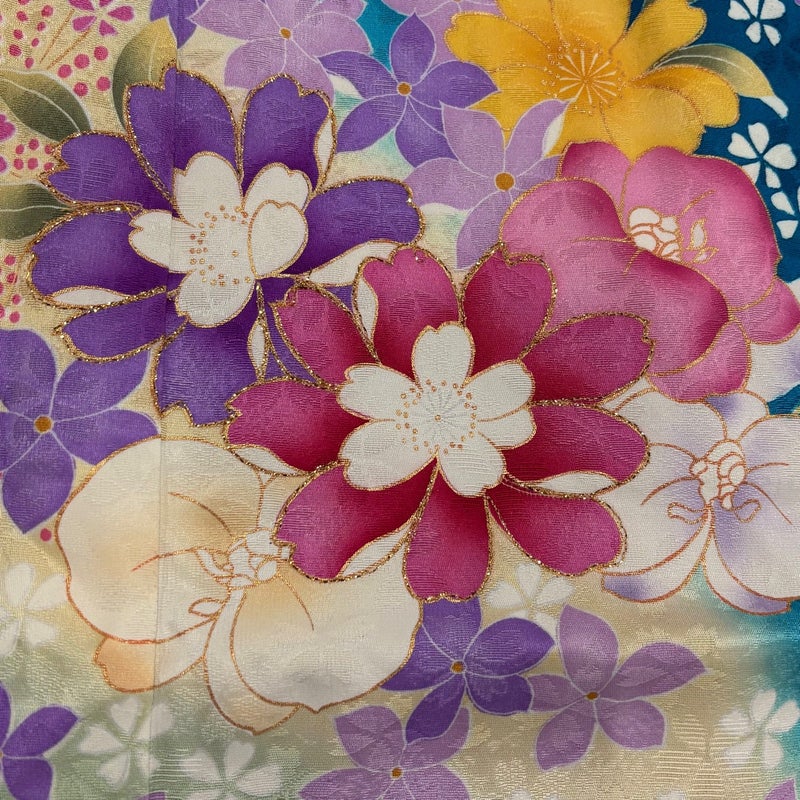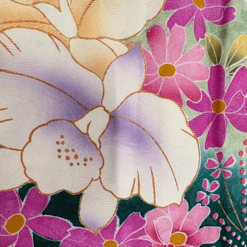 【着物ランク】秀品 【素材】正絹 【身丈】約166.5cm 【裄丈】約67cm 【袖丈】約113.5cm 【袖幅】約34cm 【前幅】約23.5cm 【後幅】約29.5cm 【サイズ】M 【着物仕立て】袷 【着用時期】10~5月 【帯丈2】約440cm 【帯幅2】約31cm 【状態ランク】ランクB 【着物着用シーン】成人式、謝恩会