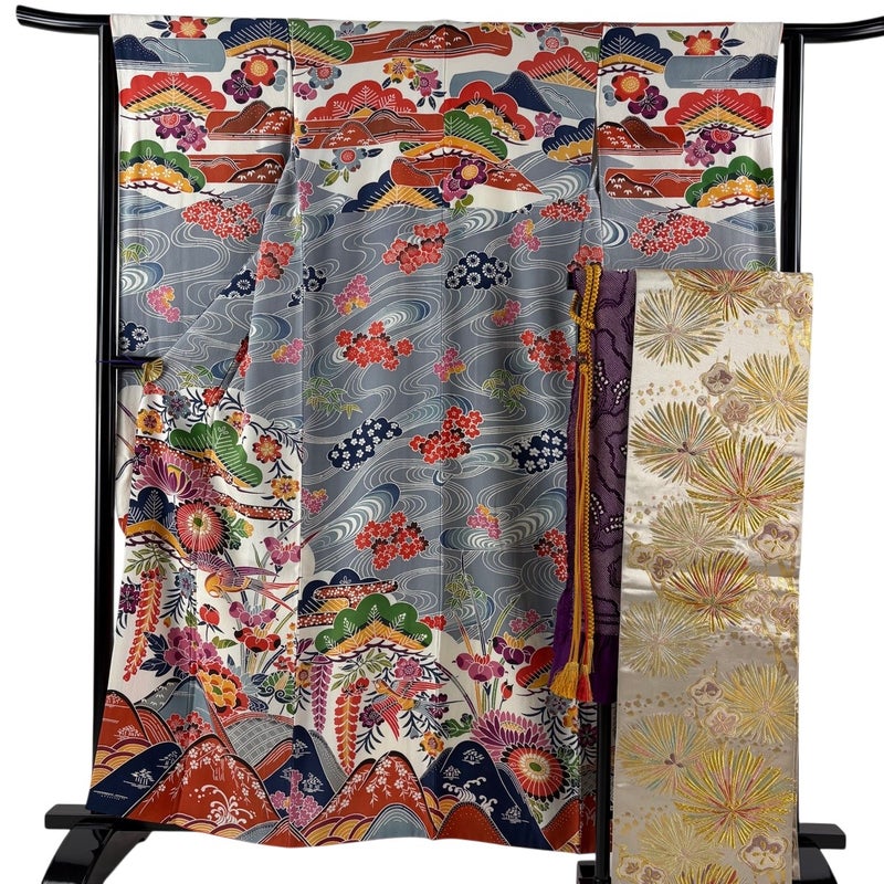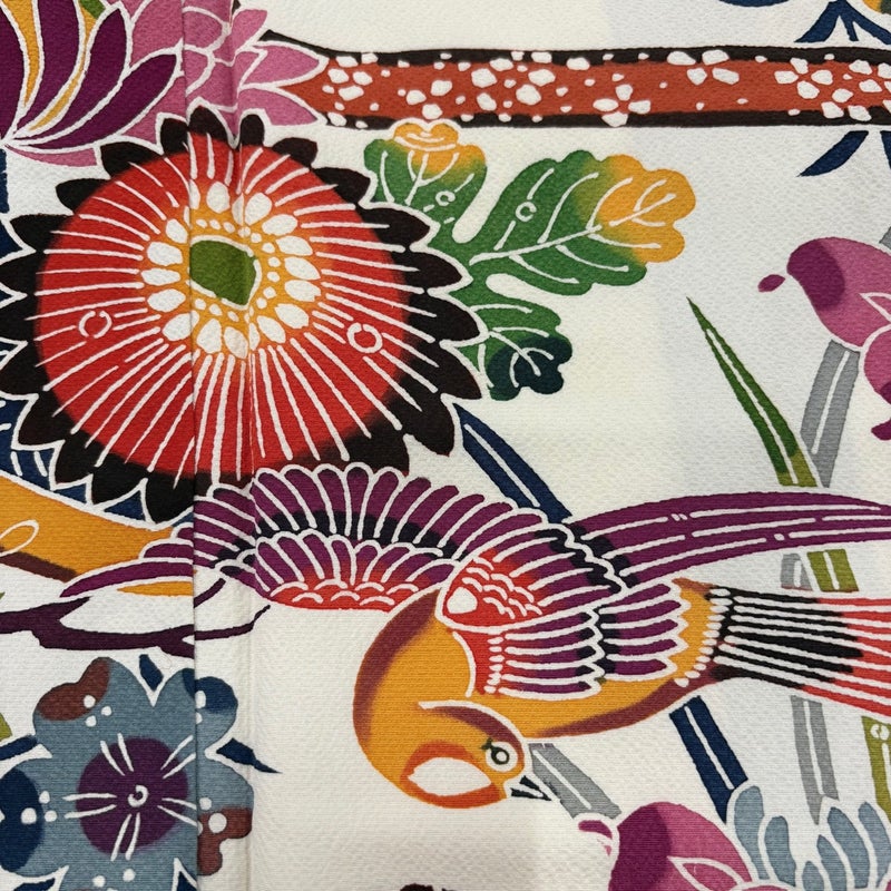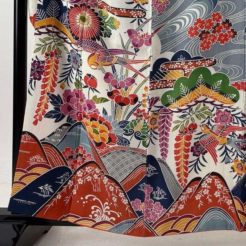 【着物ランク】名品 【素材】正絹 【身丈】約159cm 【裄丈】約63cm 【袖丈】約105cm 【袖幅】約33cm 【前幅】約23.5cm 【後幅】約28.5cm 【サイズ】S 【着物仕立て】袷 【着用時期】10~5月 【帯丈2】約436cm 【帯幅2】約30.5cm 【状態ランク】ランクA 【着物着用シーン】成人式、謝恩会