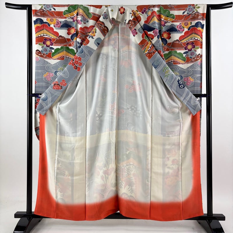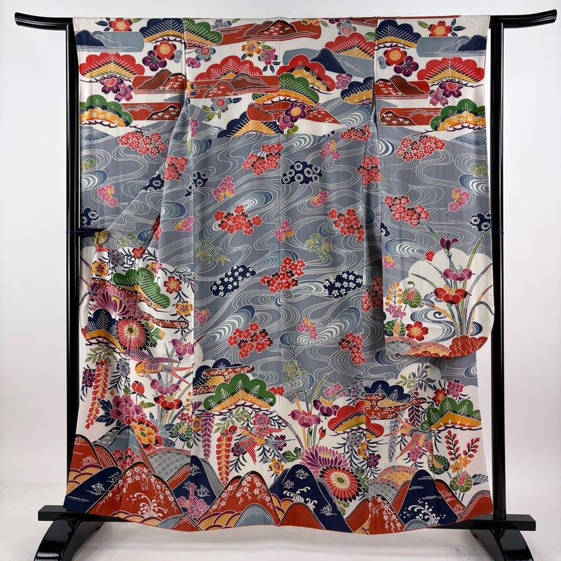 【振袖】 灰色系 灰色 名品 A 約150cm~約159cm 裄丈63cm-64cm (S)size 袖丈91cm以上 9990-29990 美品 五万以下