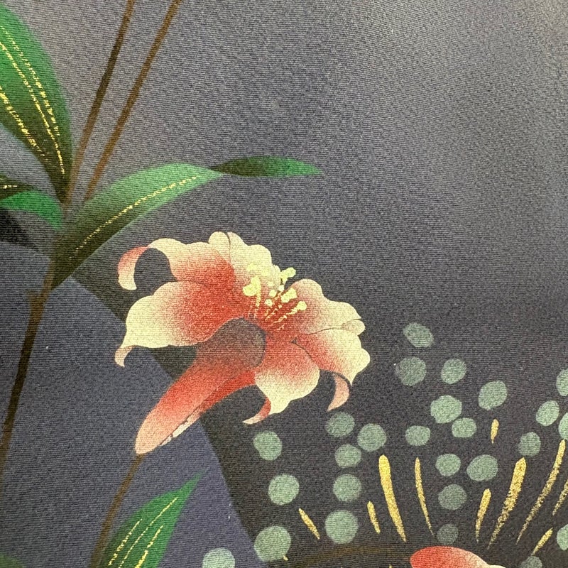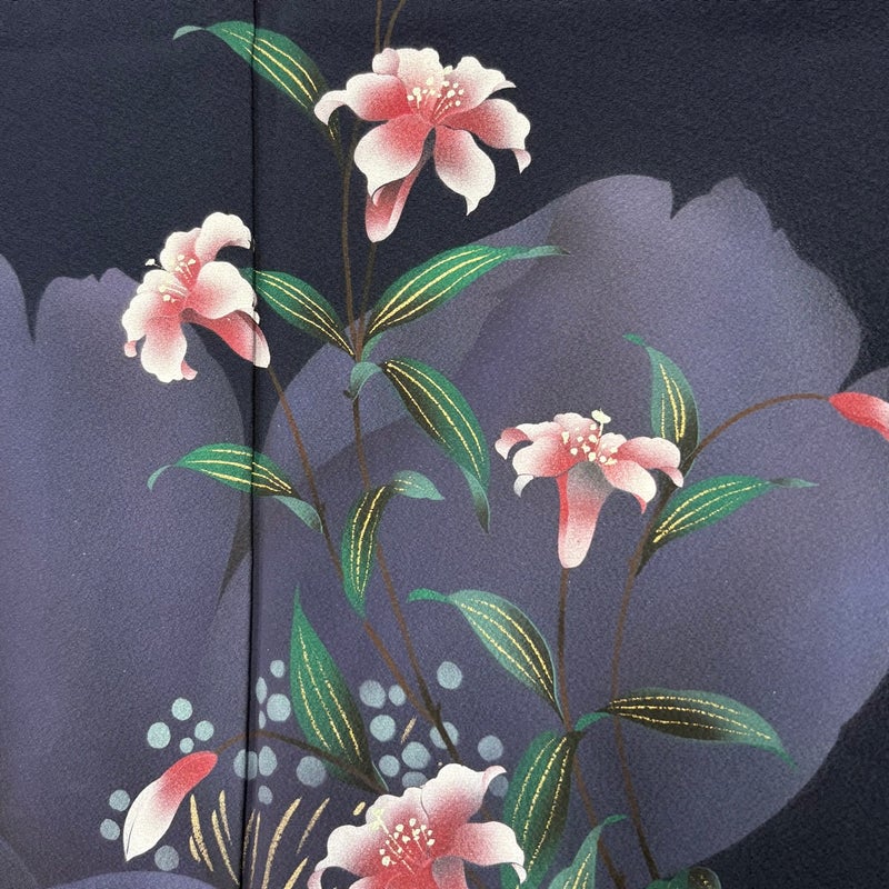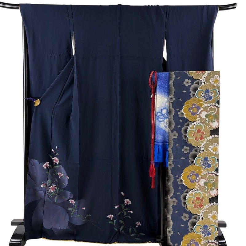【振袖】 青系 紺色 秀品 B 約170cm~約179cm 裄丈69cm以上 (L)size 袖丈91cm以上 9990-29990 五万以下