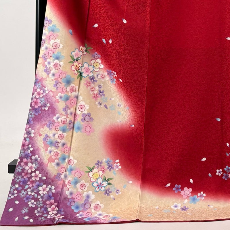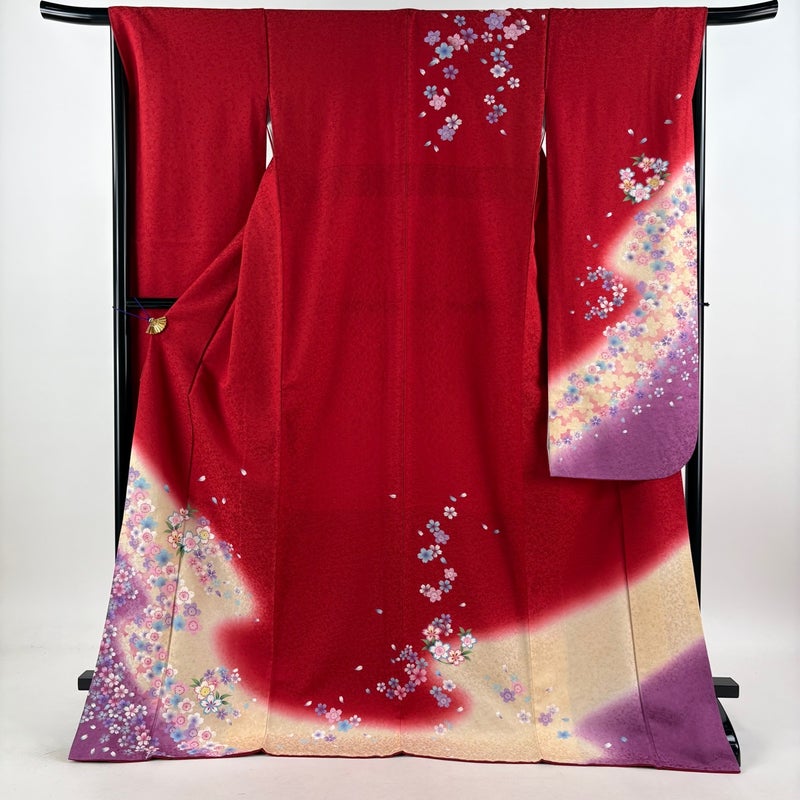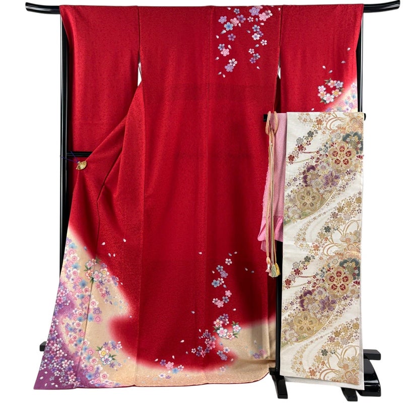 【振袖】 赤系 赤 秀品 B 約170cm~約179cm 裄丈66cm (M)size 袖丈91cm以上 9990-29990 五万以下
