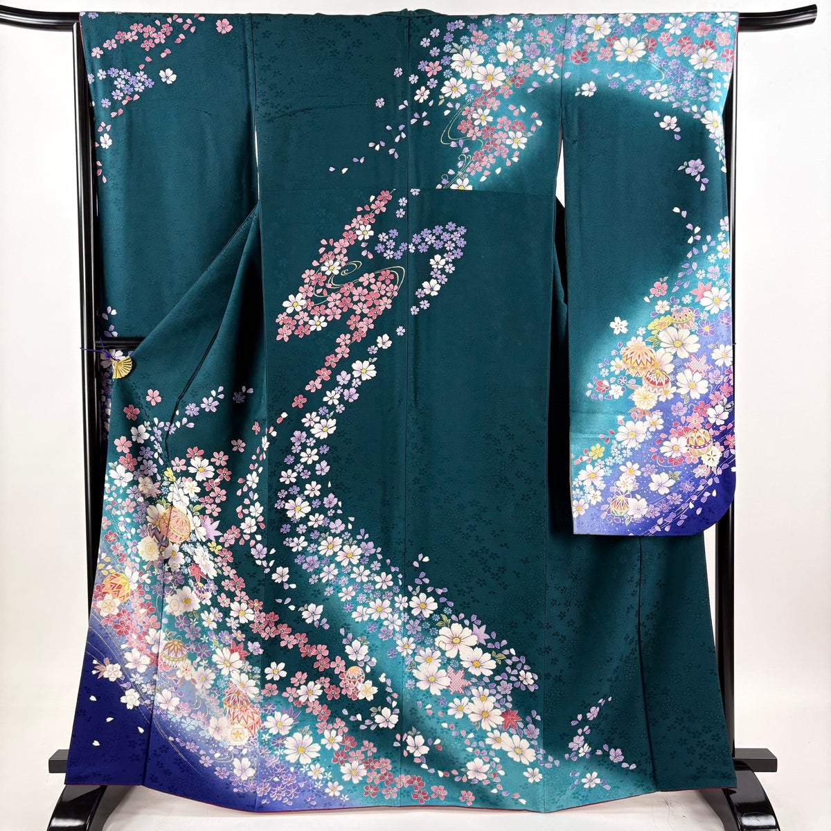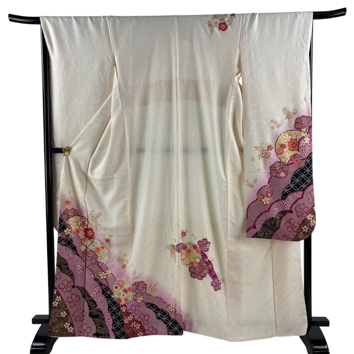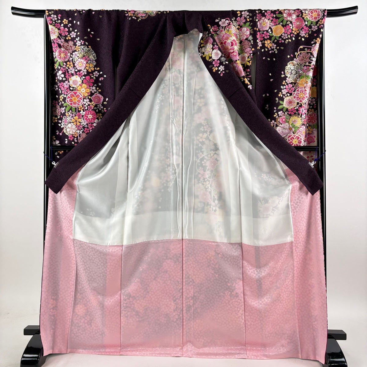 振袖は未婚女性の第1礼装であり袖丈が長いほど格調高く、改まった印象になります。 ただ第1礼装であれば五つ紋を付けるのが本来でありますが、現代では三つ紋や一つ紋、無紋でも晴れ着としては差し支え無く着用できるようになりました。 江戸初期に振袖という名称が生まれ、当時は子供と18歳までの未婚女性が着るもので、その長い袖は若さの象徴とされ、ときには社交着としても着用されていたようです。