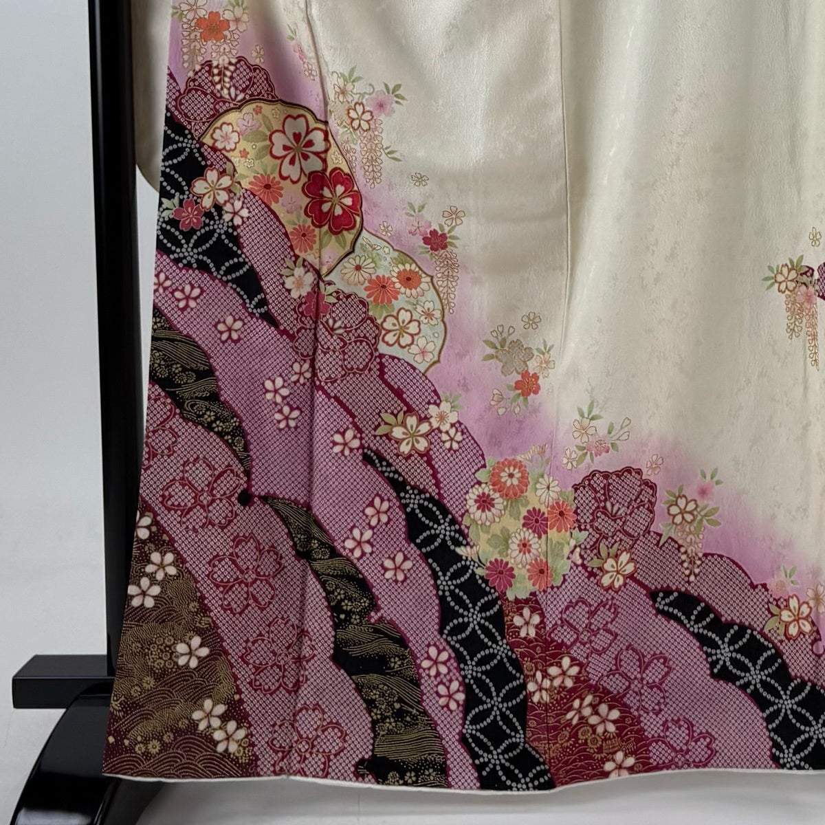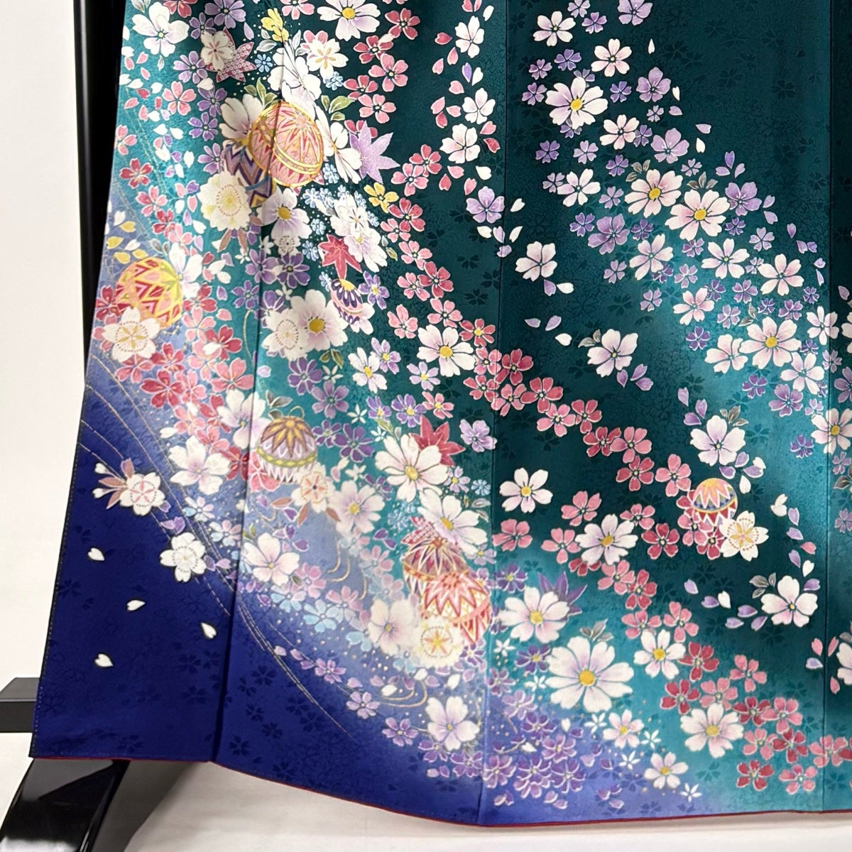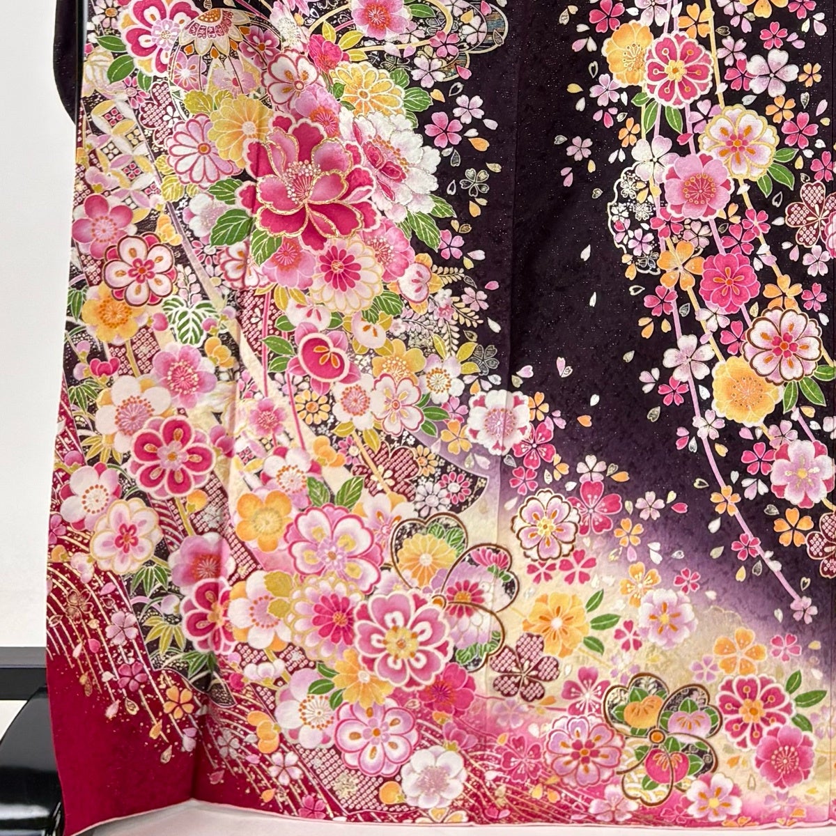 振袖は未婚女性の第1礼装であり袖丈が長いほど格調高く、改まった印象になります。 ただ第1礼装であれば五つ紋を付けるのが本来でありますが、現代では三つ紋や一つ紋、無紋でも晴れ着としては差し支え無く着用できるようになりました。 江戸初期に振袖という名称が生まれ、当時は子供と18歳までの未婚女性が着るもので、その長い袖は若さの象徴とされ、ときには社交着としても着用されていたようです。