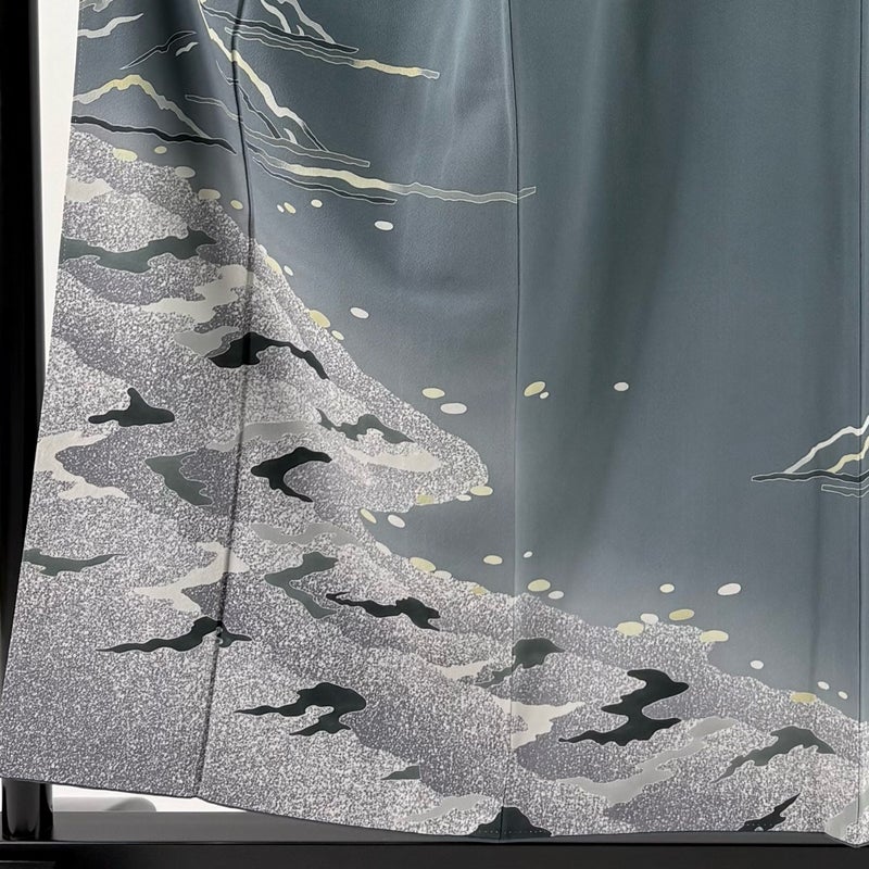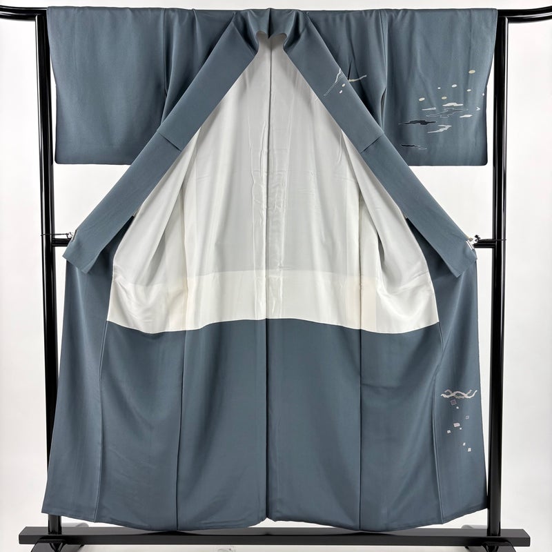 【訪問着】 灰色系 灰緑 秀品 B 約150cm~約159cm 裄丈63cm-64cm (M)size 袖丈46cm以下 7990-9980 二万以下