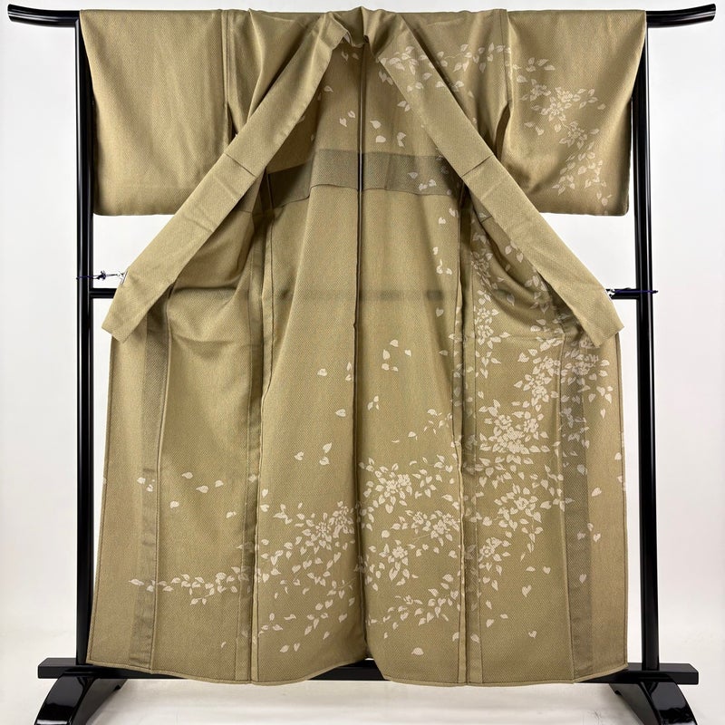 【訪問着】 茶系 茶緑色 秀品 A 約160cm~約169cm 裄丈67cm-68cm (M)size 袖丈49cm 9990-29990 美品 二万以下