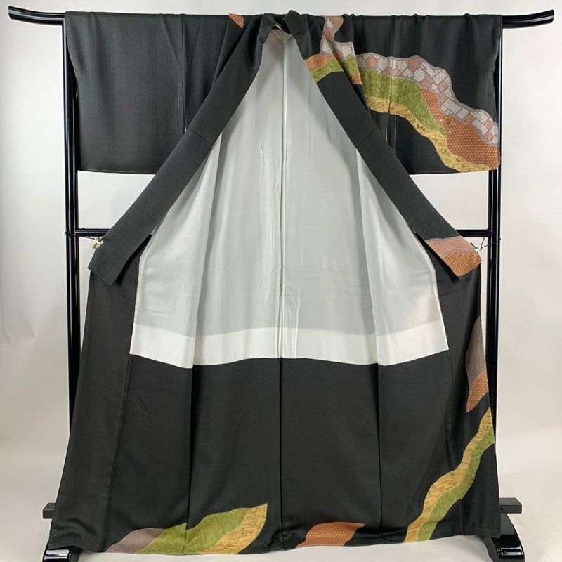 【着物ランク】名品 【素材】正絹 【身丈】約170cm 【裄丈】約70cm 【袖丈】約49.5cm 【袖幅】約35.5cm 【前幅】約27cm 【後幅】約32cm 【サイズ】L 【着物仕立て】袷 【着用時期】10~5月 【状態ランク】ランクB 【着物着用シーン】披露宴、パーティー、お見合い、式典、茶会