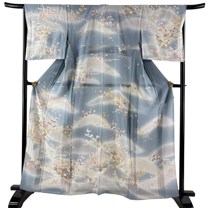 【訪問着】 灰色系 青灰色 秀品 C 約160cm~約169cm 裄丈67cm-68cm (M)size 袖丈49cm 7990-9980 二万以下