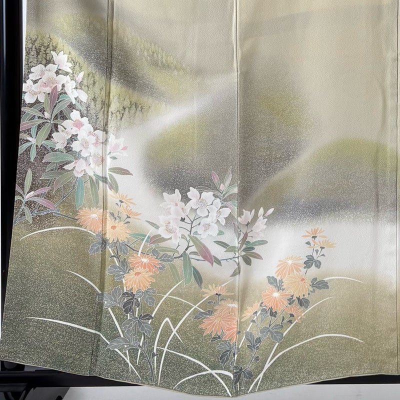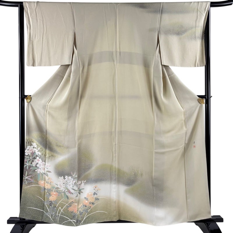 【着物ランク】秀品 【素材】正絹 【身丈】約158cm 【裄丈】約66cm 【袖丈】約47cm 【袖幅】約34cm 【前幅】約24.5cm 【後幅】約28.5cm 【サイズ】M 【着物仕立て】袷 【着用時期】10~5月 【状態ランク】ランクB 【着物着用シーン】披露宴、パーティー、お見合い、式典、茶会