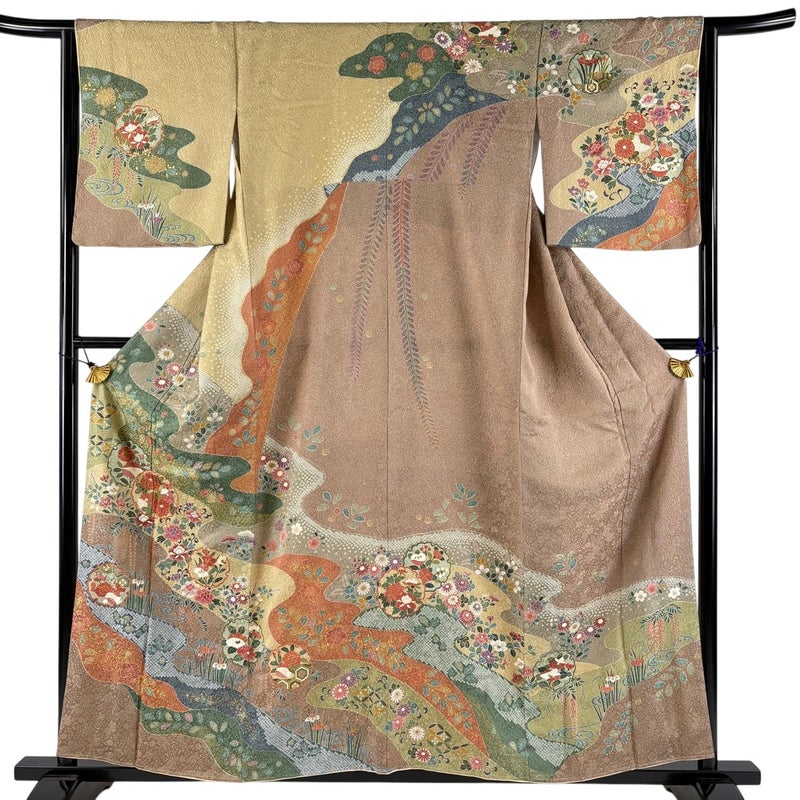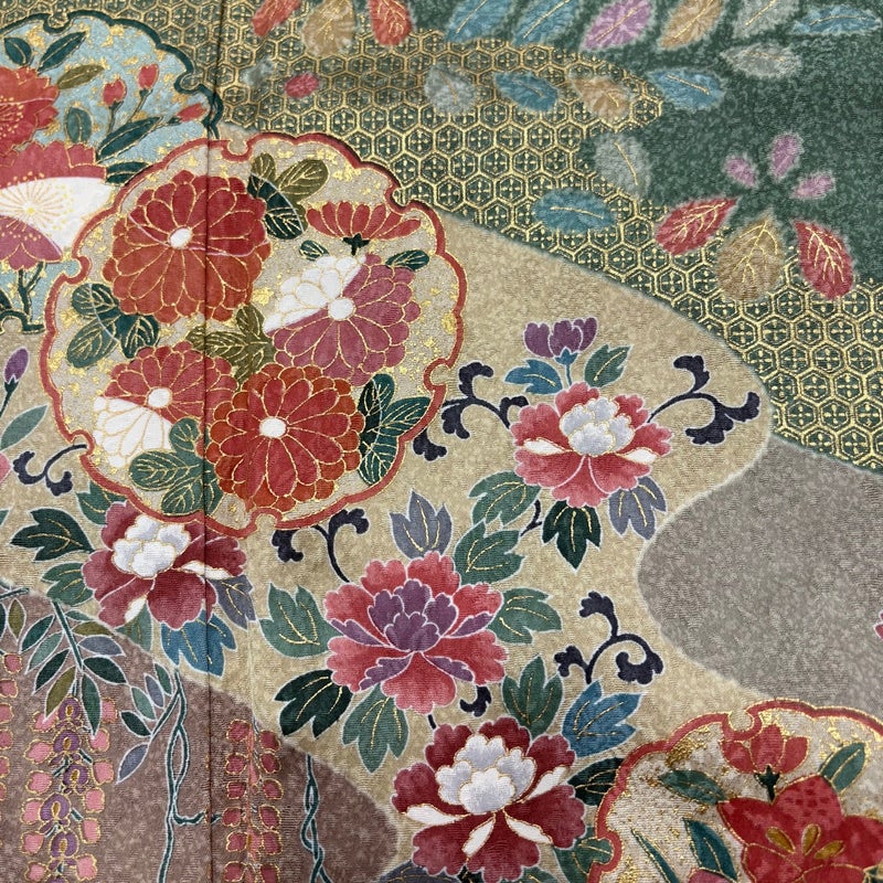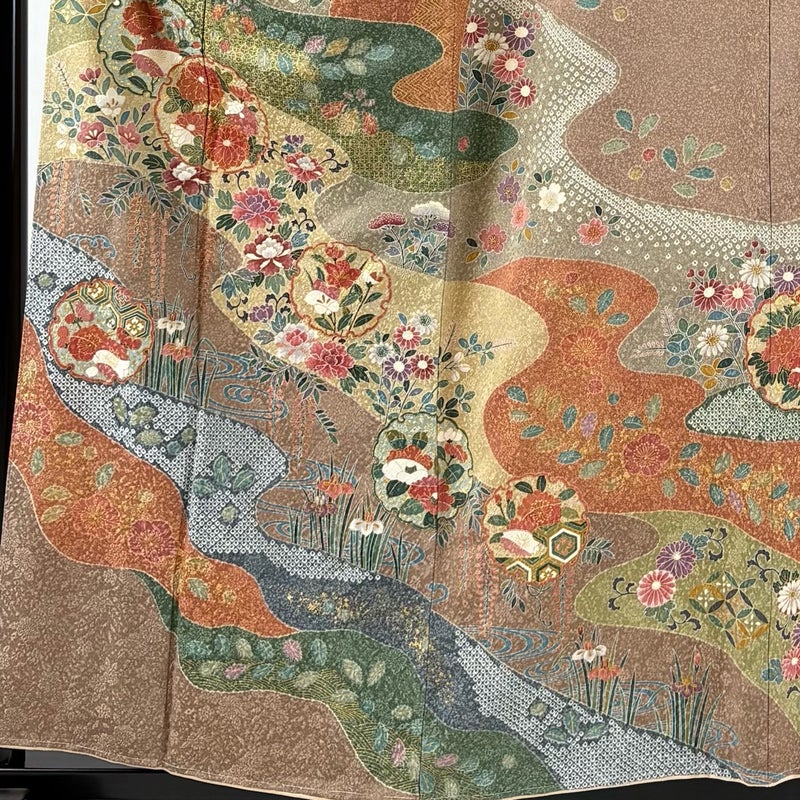 【着物ランク】名品 【素材】正絹 【身丈】約158cm 【裄丈】約63.5cm 【袖丈】約48cm 【袖幅】約33cm 【前幅】約23cm 【後幅】約31cm 【サイズ】S 【着物仕立て】袷 【着用時期】10~5月 【状態ランク】ランクA 【着物着用シーン】披露宴、パーティー、お見合い、式典、茶会