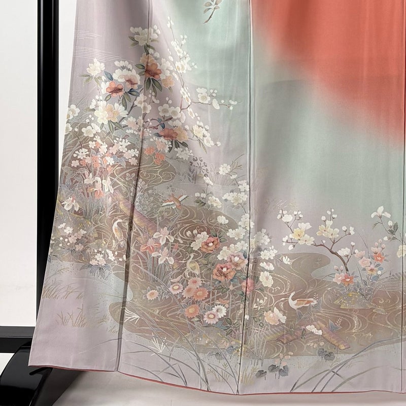 【着物ランク】秀品 【素材】正絹 【身丈】約163.5cm 【裄丈】約68cm 【袖丈】約54.5cm 【袖幅】約34cm 【前幅】約23cm 【後幅】約30cm 【サイズ】L 【着物仕立て】袷 【着用時期】10~5月 【状態ランク】ランクC 【着物着用シーン】披露宴、パーティー、お見合い、式典、茶会