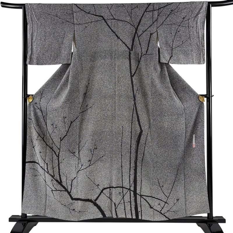 【訪問着】 灰色系 黒灰 秀品 B 約150cm~約159cm 裄丈65cm (M)size 袖丈46cm以下 7990-9980 二万以下