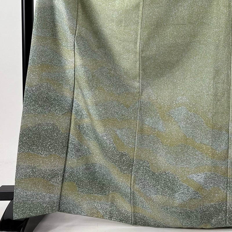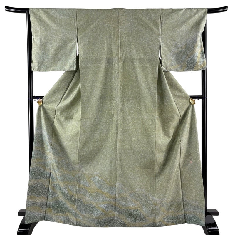【訪問着】 緑系 抹茶色 秀品 B 約160cm~約169cm 裄丈66cm (M)size 袖丈49cm 7990-9980 二万以下