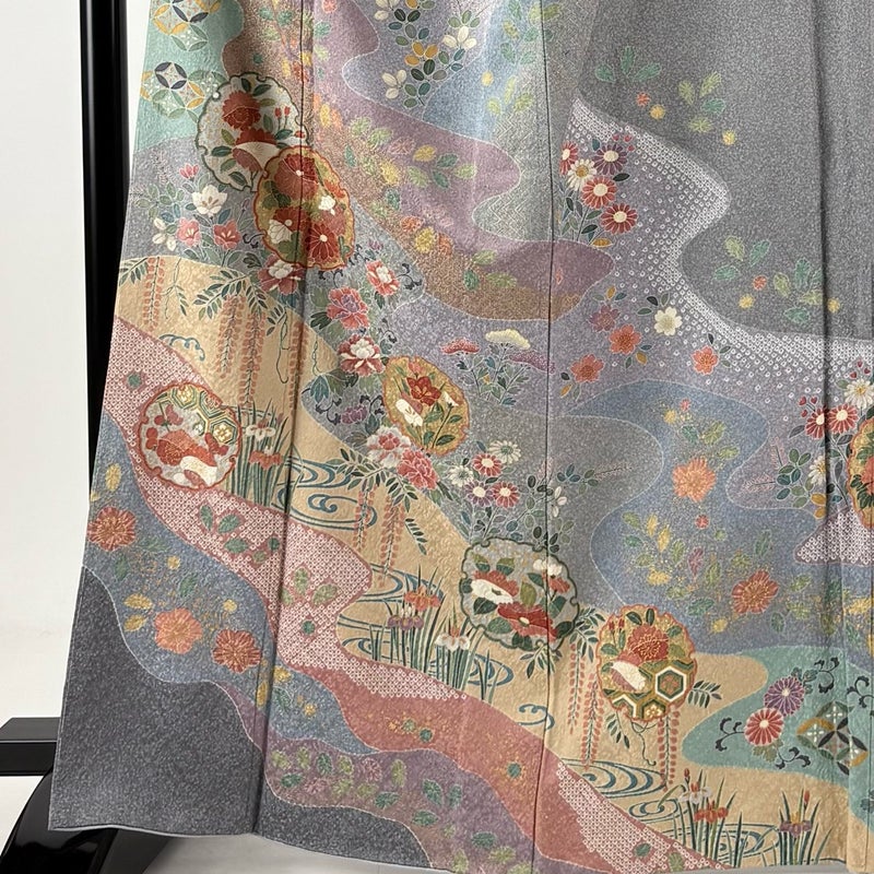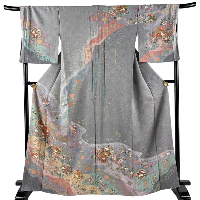 【訪問着】 灰色系 灰色 名品 B 約160cm~約169cm 裄丈69cm以上 (L)size 袖丈50cm-60cm 9990-29990 二万以下