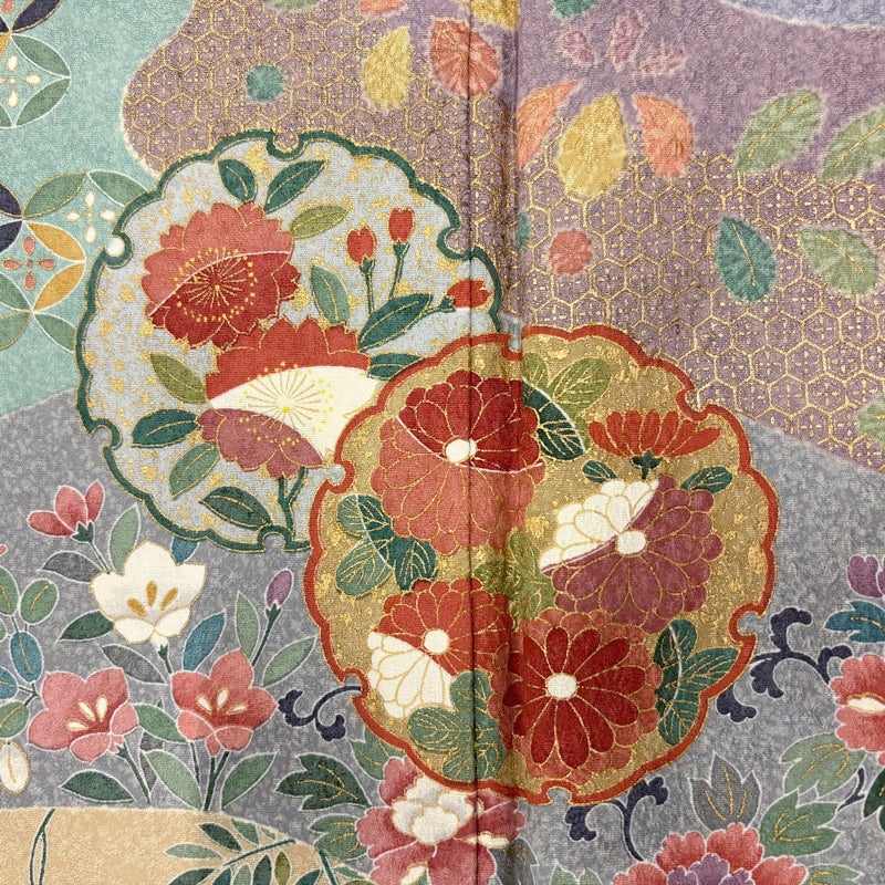 【着物ランク】名品 【素材】正絹 【身丈】約166.5cm 【裄丈】約70.5cm 【袖丈】約51.5cm 【袖幅】約35.5cm 【前幅】約25cm 【後幅】約29.5cm 【サイズ】L 【着物仕立て】袷 【着用時期】10~5月 【状態ランク】ランクB 【着物着用シーン】披露宴、パーティー、お見合い、式典、茶会