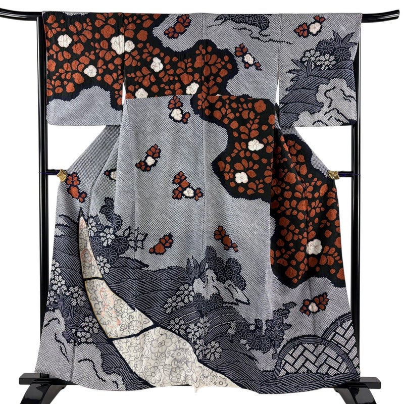【着物ランク】秀品 【素材】正絹 【身丈】約159.5cm 【裄丈】約64.5cm 【袖丈】約48.5cm 【袖幅】約32.5cm 【前幅】約28cm 【後幅】約31.5cm 【サイズ】M 【着物仕立て】袷 【着用時期】10~5月 【状態ランク】ランクB 【着物着用シーン】披露宴、パーティー、お見合い、式典、茶会