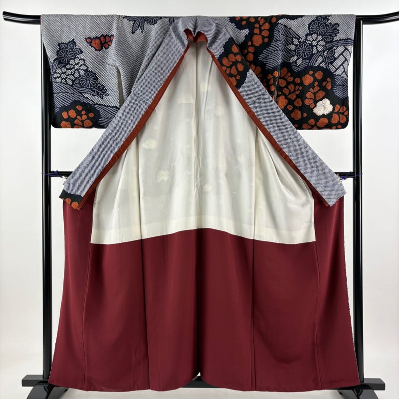 【訪問着】 青系 紺色 秀品 B 約150cm~約159cm 裄丈63cm-64cm (M)size 袖丈48cm 7990-9980 二万以下