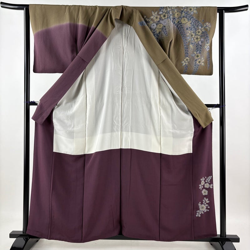 【訪問着】 茶系 茶緑色 秀品 B 約160cm~約169cm 裄丈62cm以下 (S)size 袖丈46cm以下 7990-9980 二万以下