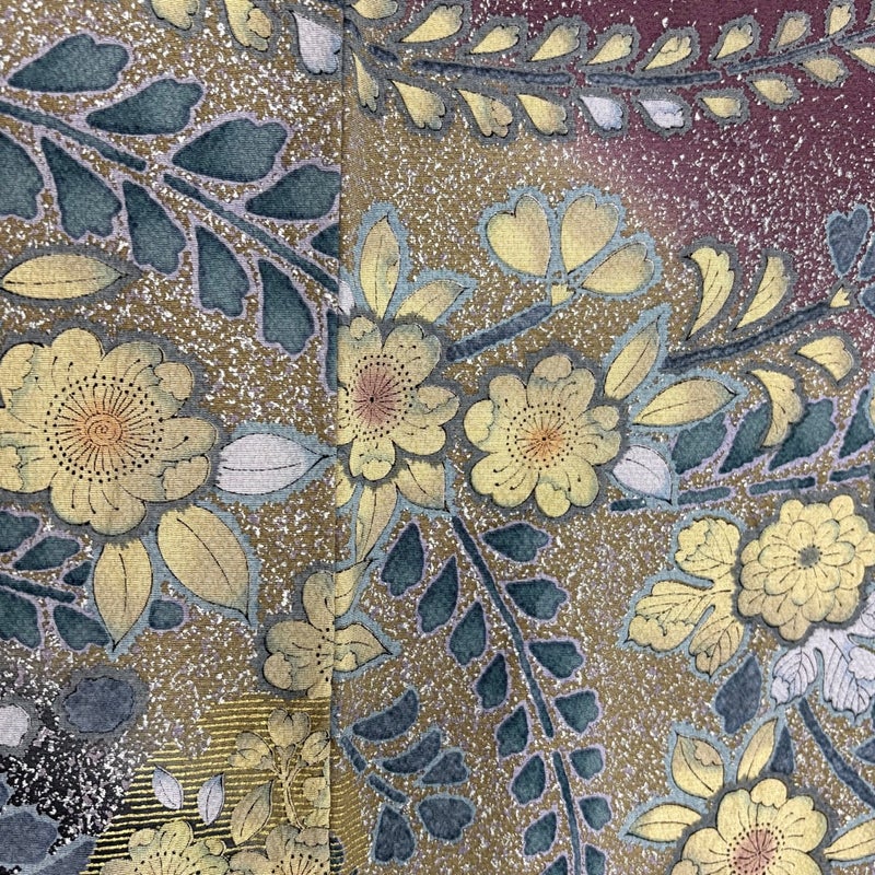 【着物ランク】秀品 【素材】正絹 【身丈】約160cm 【裄丈】約61.5cm 【袖丈】約46.5cm 【袖幅】約32.5cm 【前幅】約23cm 【後幅】約28.5cm 【サイズ】S 【着物仕立て】袷 【着用時期】10~5月 【状態ランク】ランクB 【着物着用シーン】披露宴、パーティー、お見合い、式典、茶会