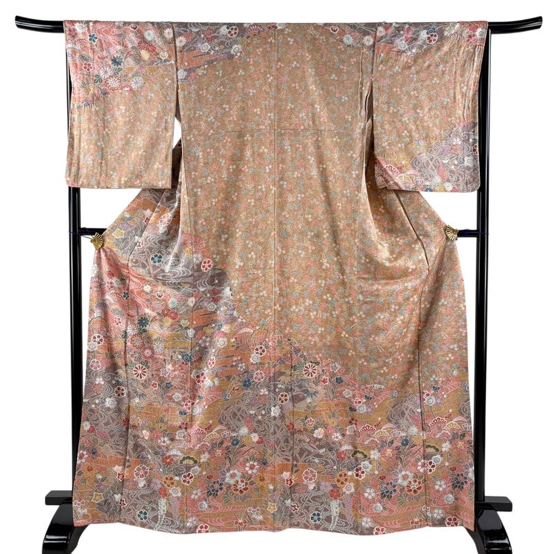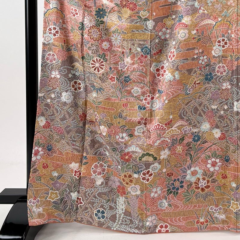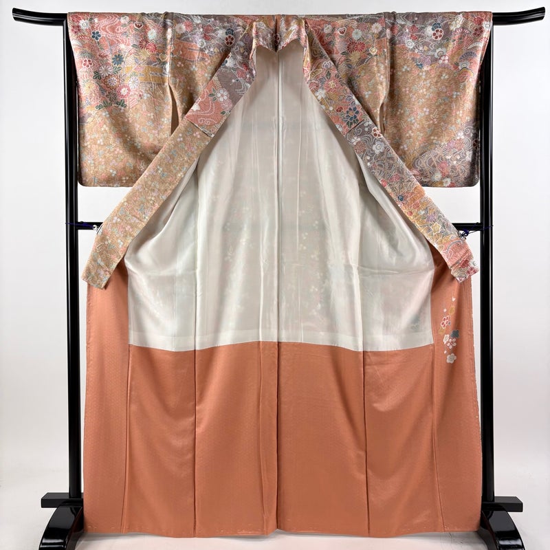 【訪問着】 赤系 サーモンピンク 秀品 B 約160cm~約169cm 裄丈67cm-68cm (M)size 袖丈50cm-60cm 7990-9980 二万以下