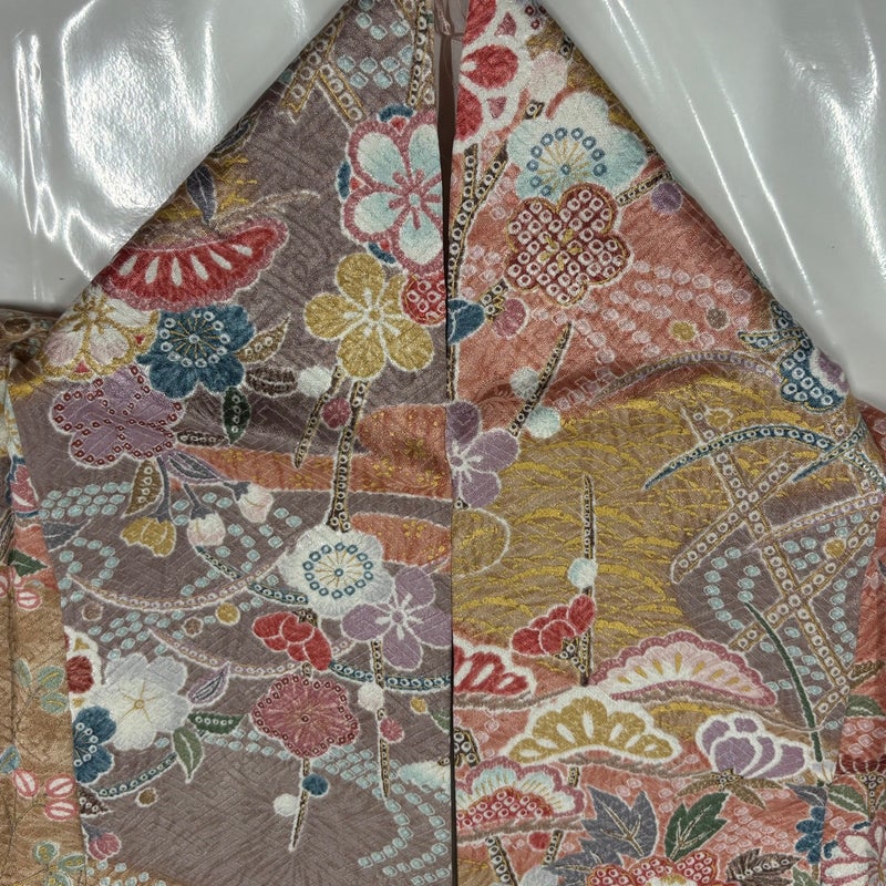 【着物ランク】秀品 【素材】正絹 【身丈】約167cm 【裄丈】約67cm 【袖丈】約55.5cm 【袖幅】約34cm 【前幅】約23cm 【後幅】約29.5cm 【サイズ】M 【着物仕立て】袷 【着用時期】10~5月 【状態ランク】ランクB 【着物着用シーン】披露宴、パーティー、お見合い、式典、茶会