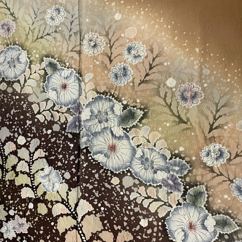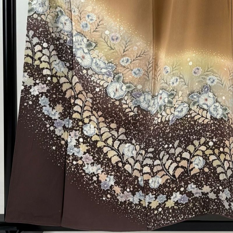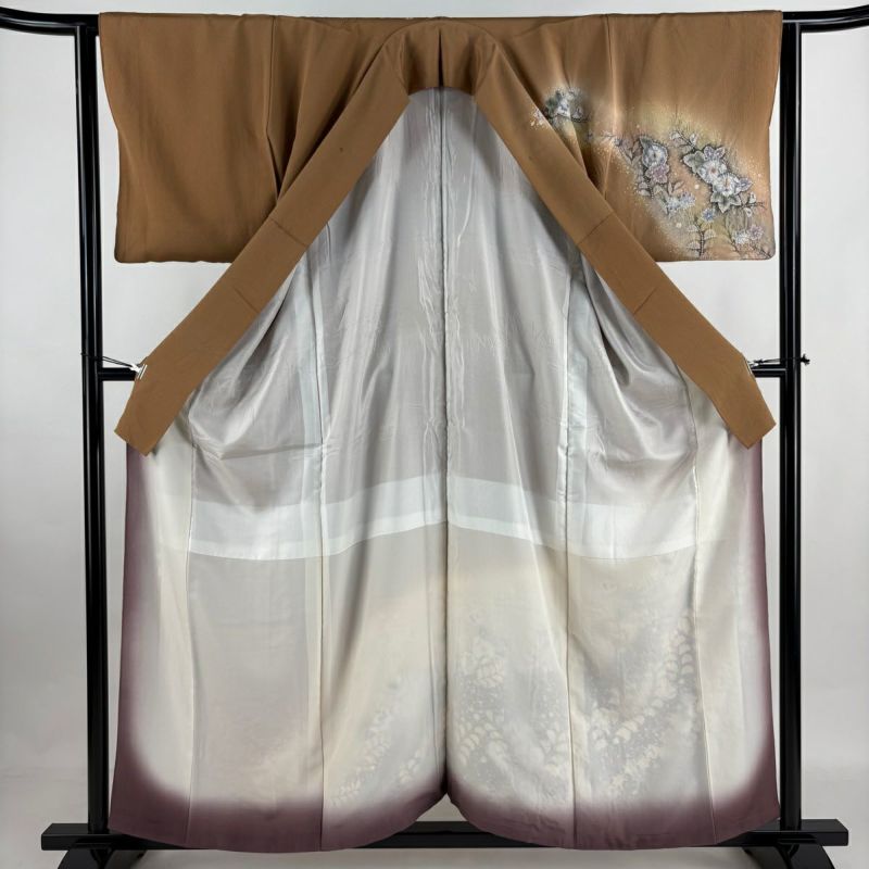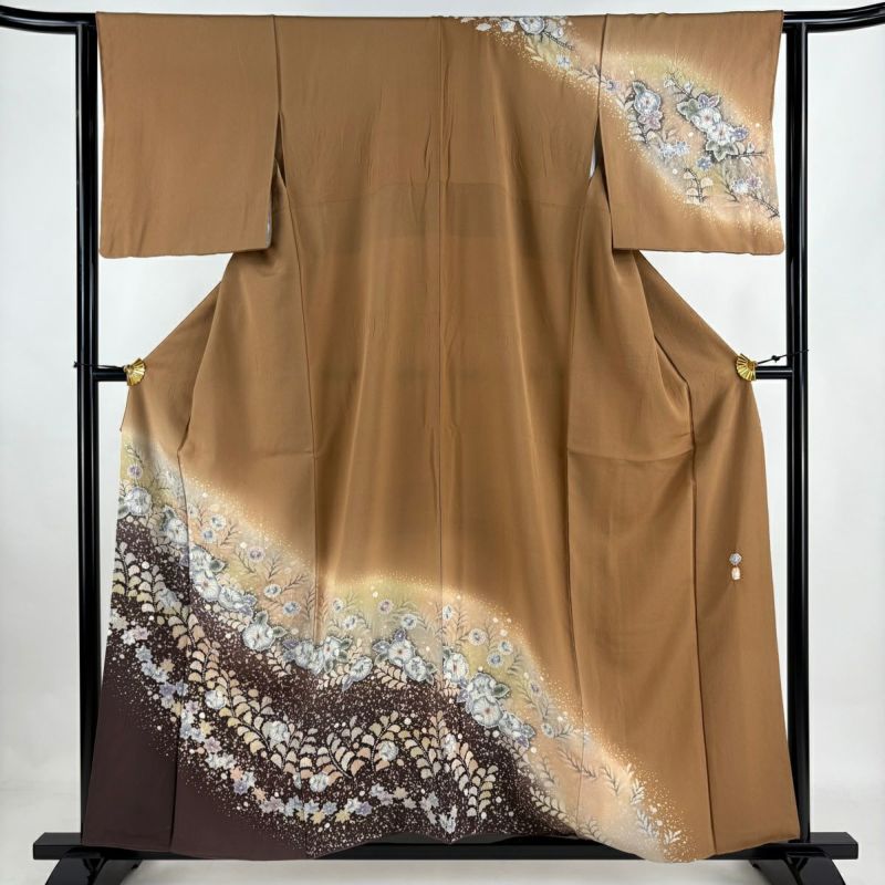 【訪問着】 茶系 茶色 秀品 B 約150cm~約159cm 裄丈62cm以下 (S)size 袖丈46cm以下 7990-9980 二万以下