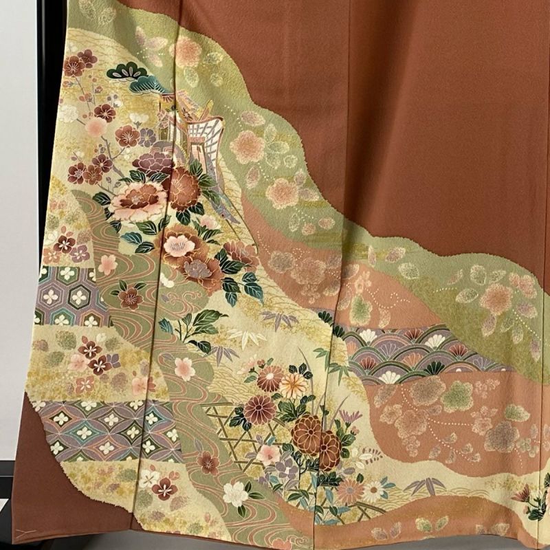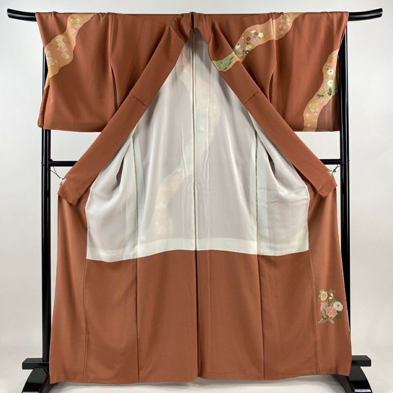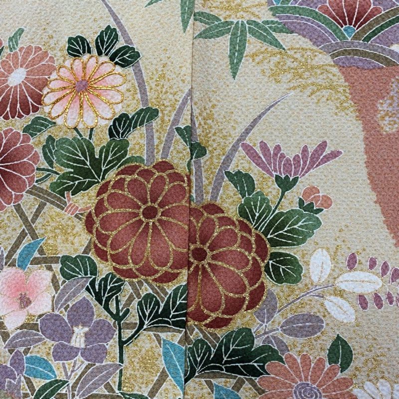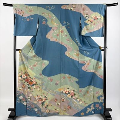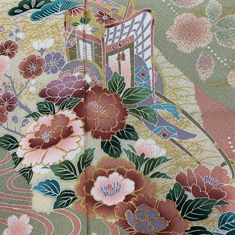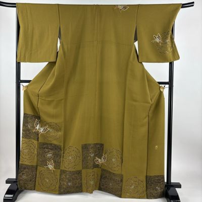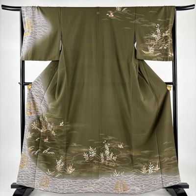 【着物ランク】名品 【素材】正絹 【身丈】約165.5cm 【裄丈】約68.5cm 【袖丈】約54.5cm 【袖幅】約35cm 【前幅】約24.5cm 【後幅】約30cm 【サイズ】L 【着物仕立て】袷 【着用時期】10~5月 【状態ランク】ランクB 【着物着用シーン】披露宴、パーティー、お見合い、式典、茶会