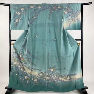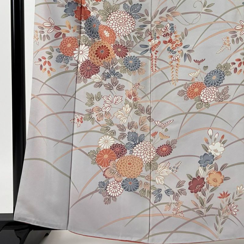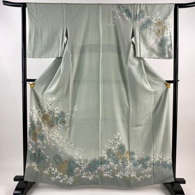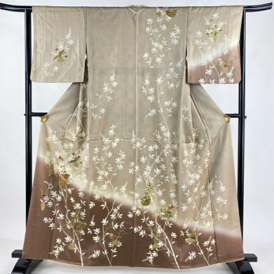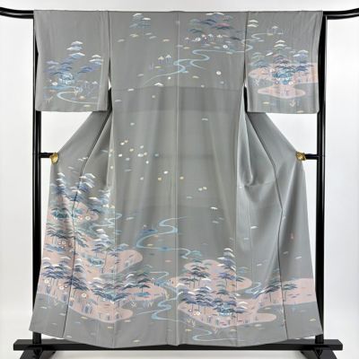 【着物ランク】名品 【素材】正絹 【身丈】約163cm 【裄丈】約64.5cm 【袖丈】約48.5cm 【袖幅】約33.5cm 【前幅】約24cm 【後幅】約29cm 【サイズ】M 【着物仕立て】袷 【着用時期】10~5月 【状態ランク】ランクC 【着物着用シーン】披露宴、パーティー、お見合い、式典、茶会