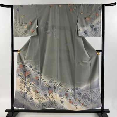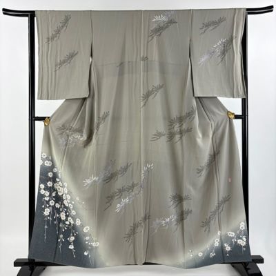【訪問着】 灰色系 灰茶 名品 B 約160cm~約169cm 裄丈65cm (M)size 袖丈48cm 9990-29990 二万以下