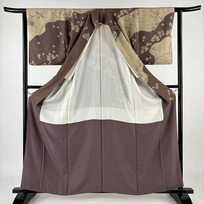【訪問着】 茶系 薄茶色 秀品 C 約160cm~約169cm 裄丈62cm以下 (S)size 袖丈48cm -3980 二万以下