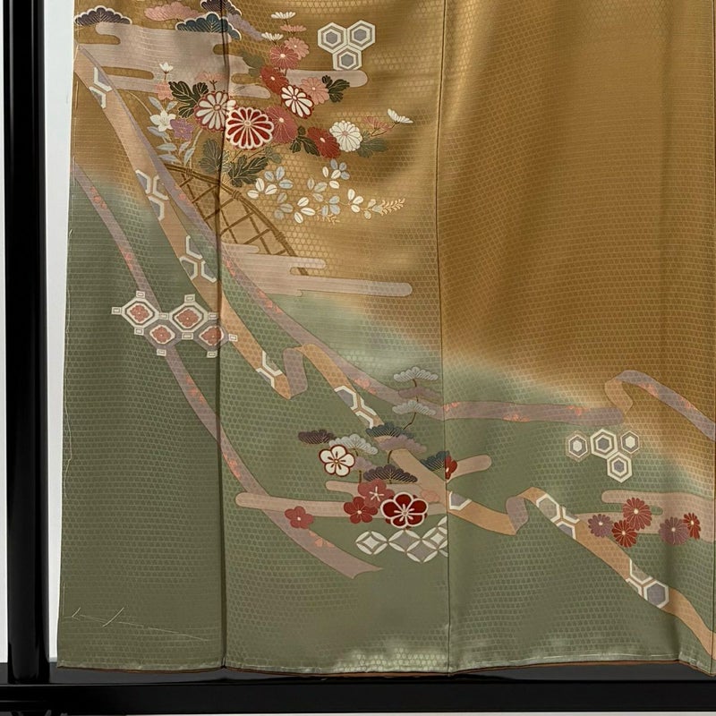 【着物ランク】秀品 【素材】正絹 【身丈】約157.5cm 【裄丈】約64.5cm 【袖丈】約48.5cm 【袖幅】約33cm 【前幅】約22.5cm 【後幅】約28cm 【サイズ】M 【着物仕立て】袷 【着用時期】10~5月 【状態ランク】ランクA 【着物着用シーン】披露宴、パーティー、お見合い、式典、茶会