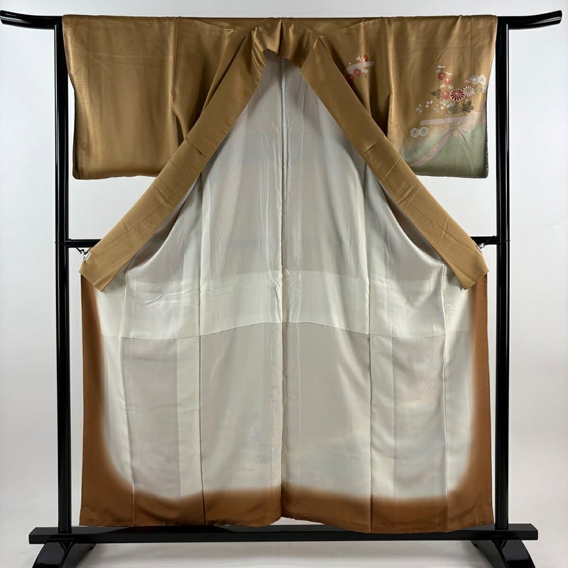 【訪問着】 茶系 薄茶色 秀品 A 約150cm~約159cm 裄丈63cm-64cm (M)size 袖丈48cm -3980 美品 二万以下