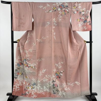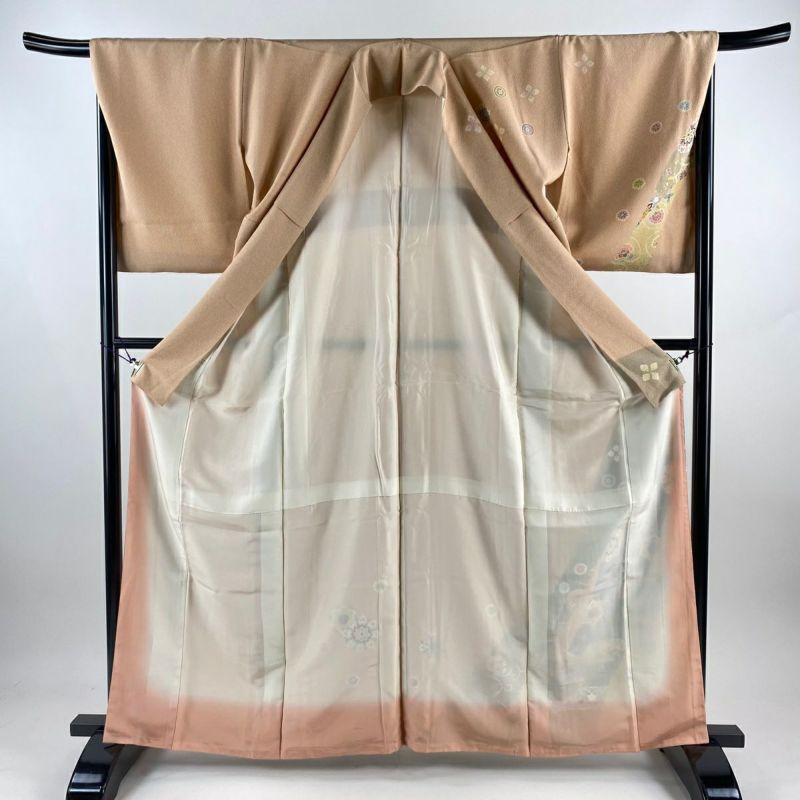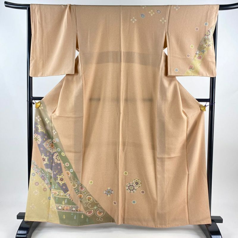 【訪問着】 赤系 薄オレンジ 秀品 B 約160cm~約169cm 裄丈66cm (M)size 袖丈50cm-60cm 7990-9980 二万以下