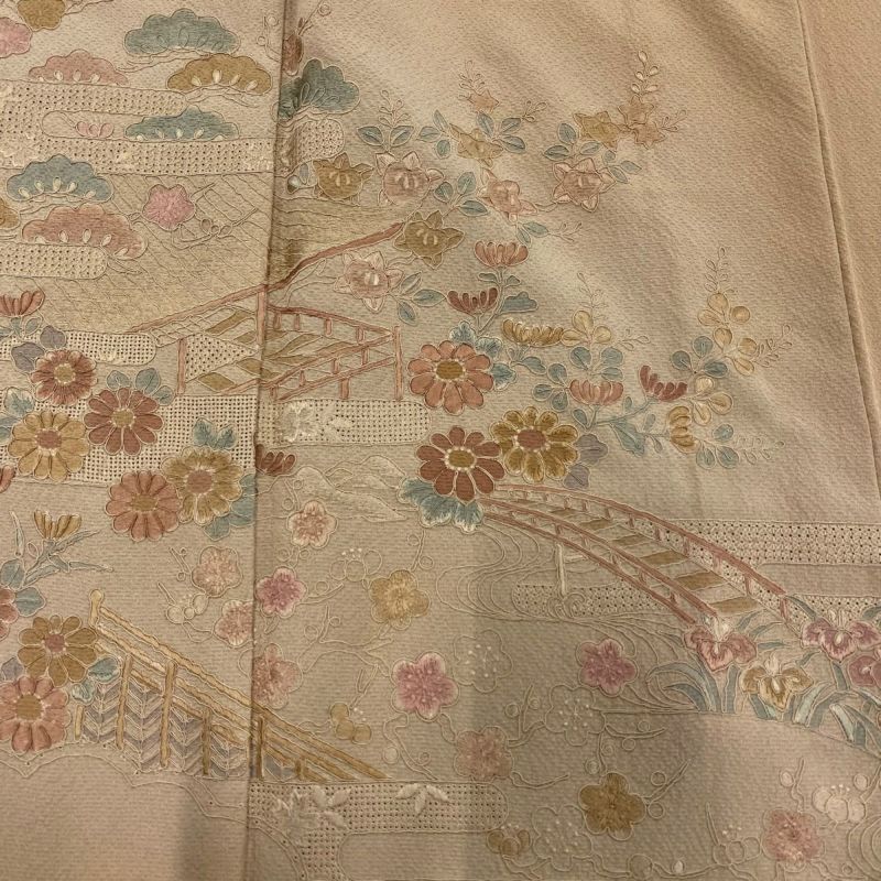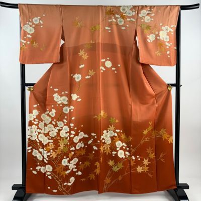 【着物ランク】秀品 【素材】正絹 【身丈】約154.5cm 【裄丈】約62cm 【袖丈】約46cm 【袖幅】約33cm 【前幅】約23cm 【後幅】約30cm 【サイズ】S 【着物仕立て】袷 【着用時期】10~5月 【状態ランク】ランクB 【着物着用シーン】披露宴、パーティー、お見合い、式典、茶会